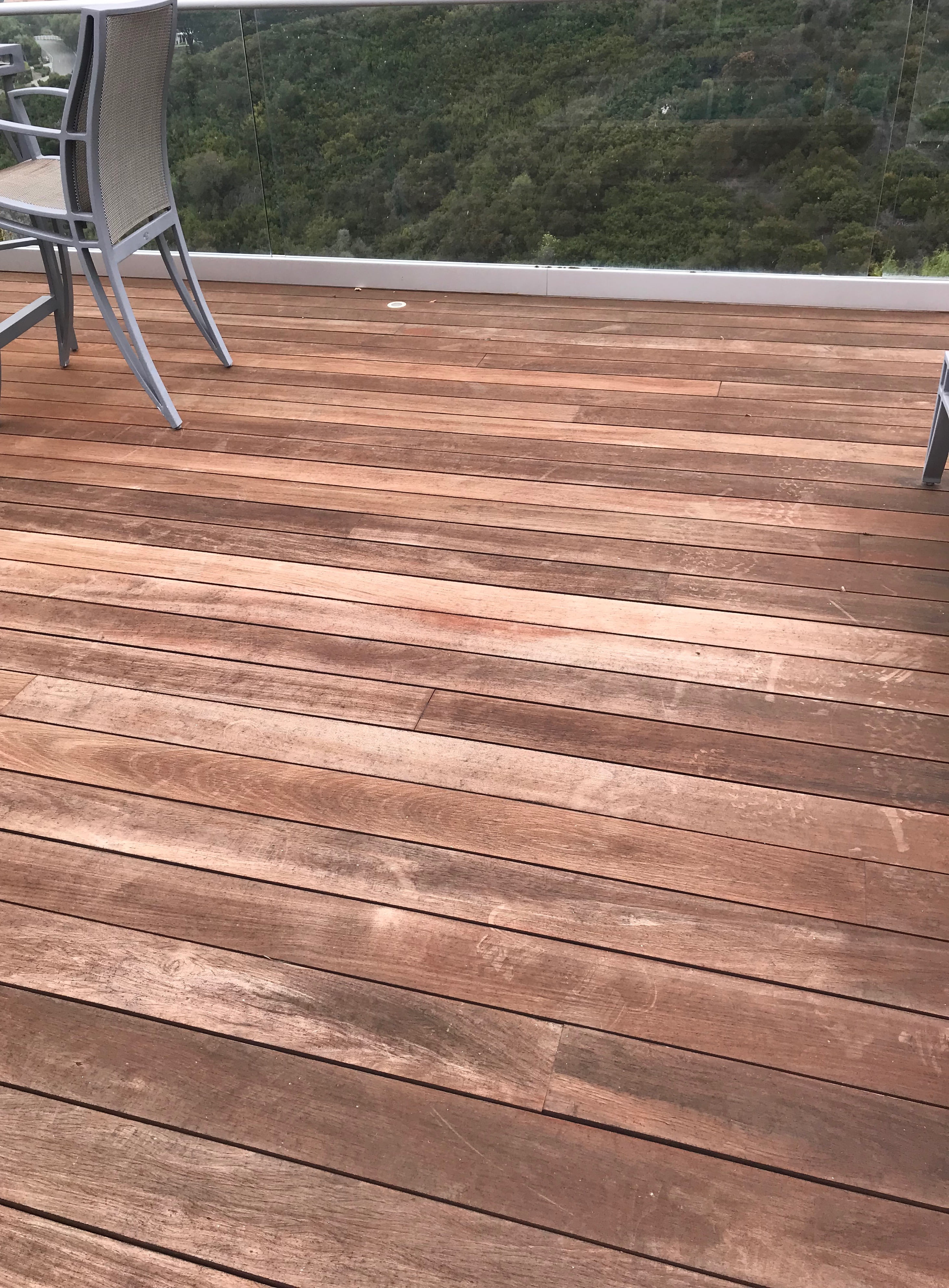 Hi .. Have IPE deck in Los Angeles area , intense day time summer heat from direct sun 10 hours a day and dry canyon below , south east facing, 3/4 mile from ocean, usually dew on deck in morning . Have been using AC Mahogany for a few years , last applied 9 months ago. The painter uses a machine sander (unknown grit) and then applies one coat with stain pads.