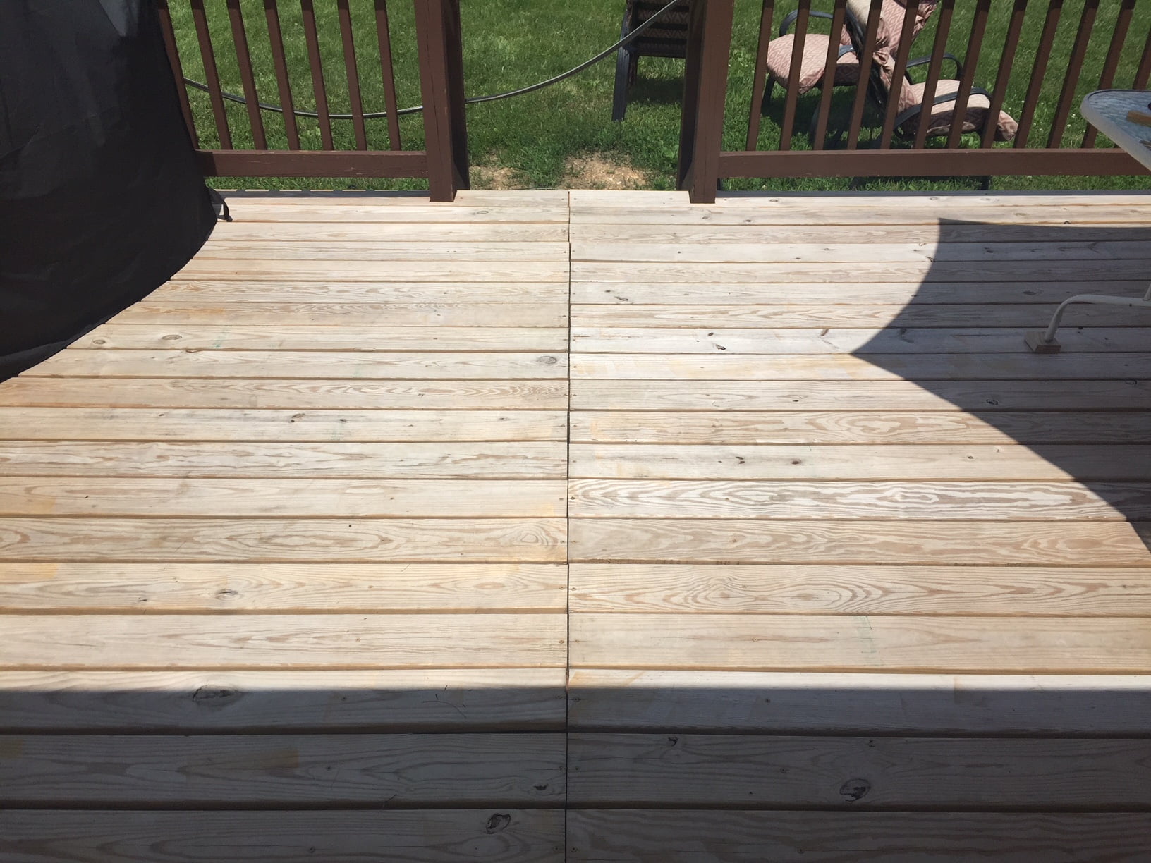 About a year ago I replaced my 15 year old green pressure treated deck boards (never did anything to it but sweep it off).
