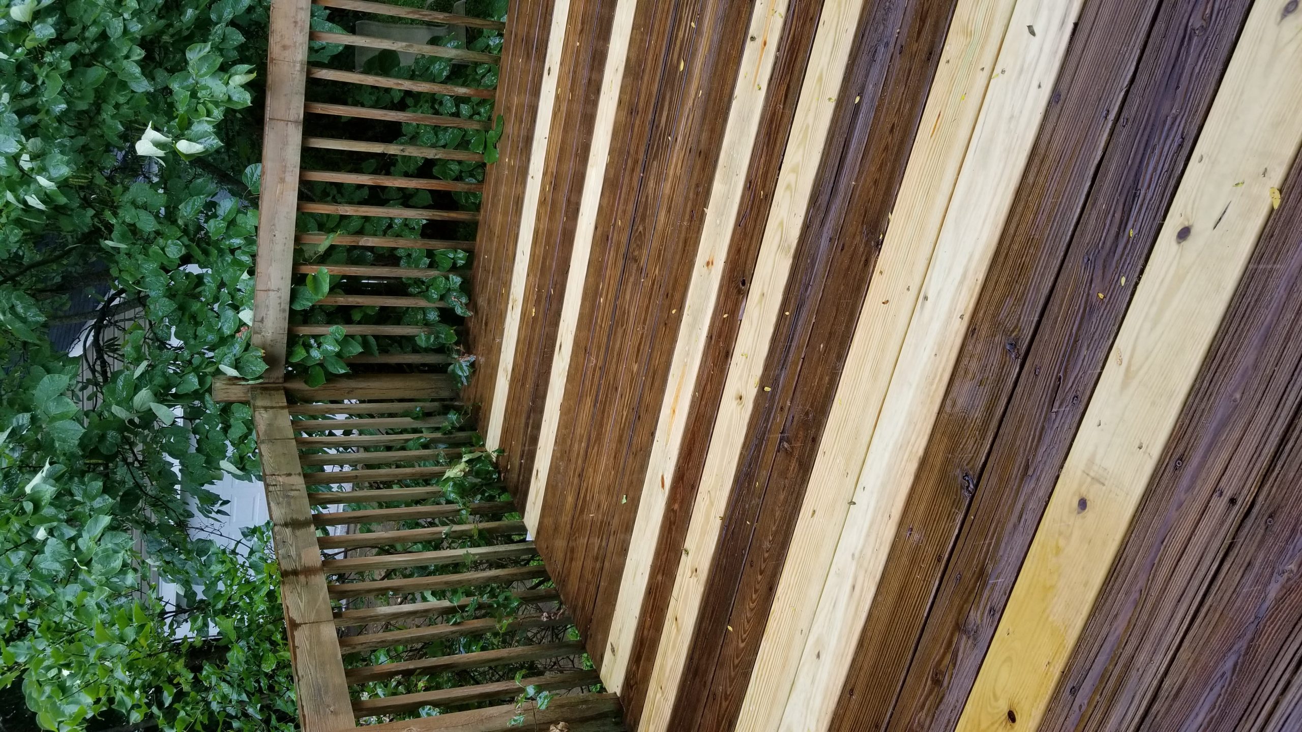 The new boards are brown pressure treated and I would like to stain them rather than letting them go grey.