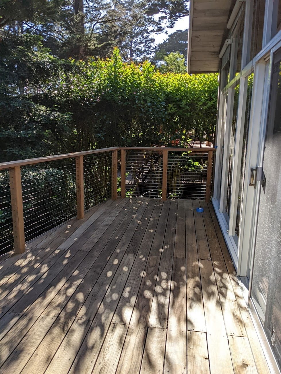 The Armstrong Clark Deck Stain was super easy to apply and extremely user-friendly. Upon the manufacturer’s claims of being able to apply in direct sunlight, we tested our application on a 90-degree day in full sun. We were surprised the stain did not dry too quickly and applied evenly in those conditions, avoiding potential issues with Applying a Deck Stain in Full Sun. There were no excess dripping issues on the railings even though we applied using a pump sprayer and back wiped with a stain brush. The semi-transparent stain applied well using this method.