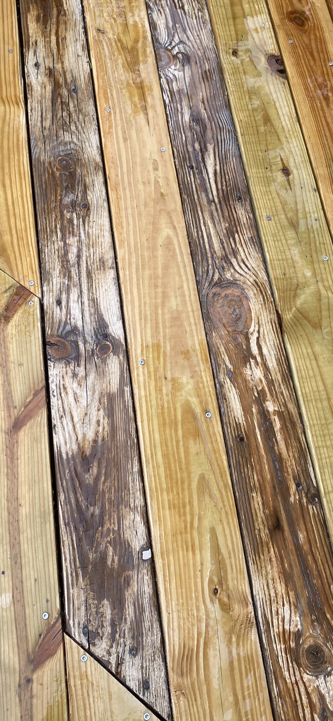 Any idea what caused this yellowing all over the deck boards?