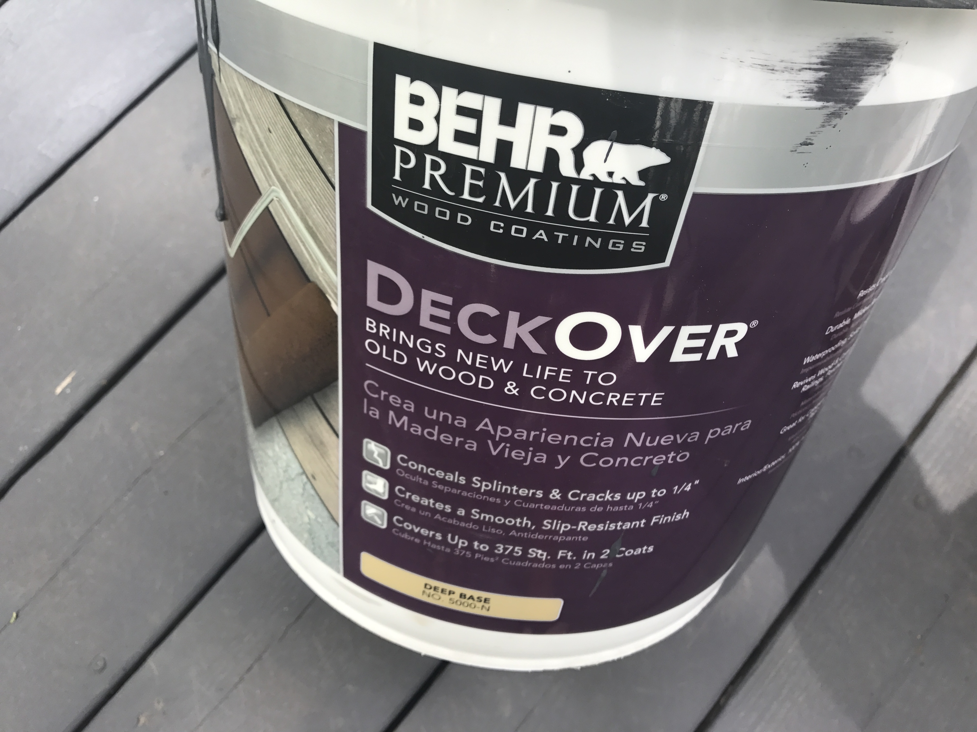 Important Note: Behr Deckover is now called Behr Advanced DeckOver. It comes in a smooth or textured finish.
