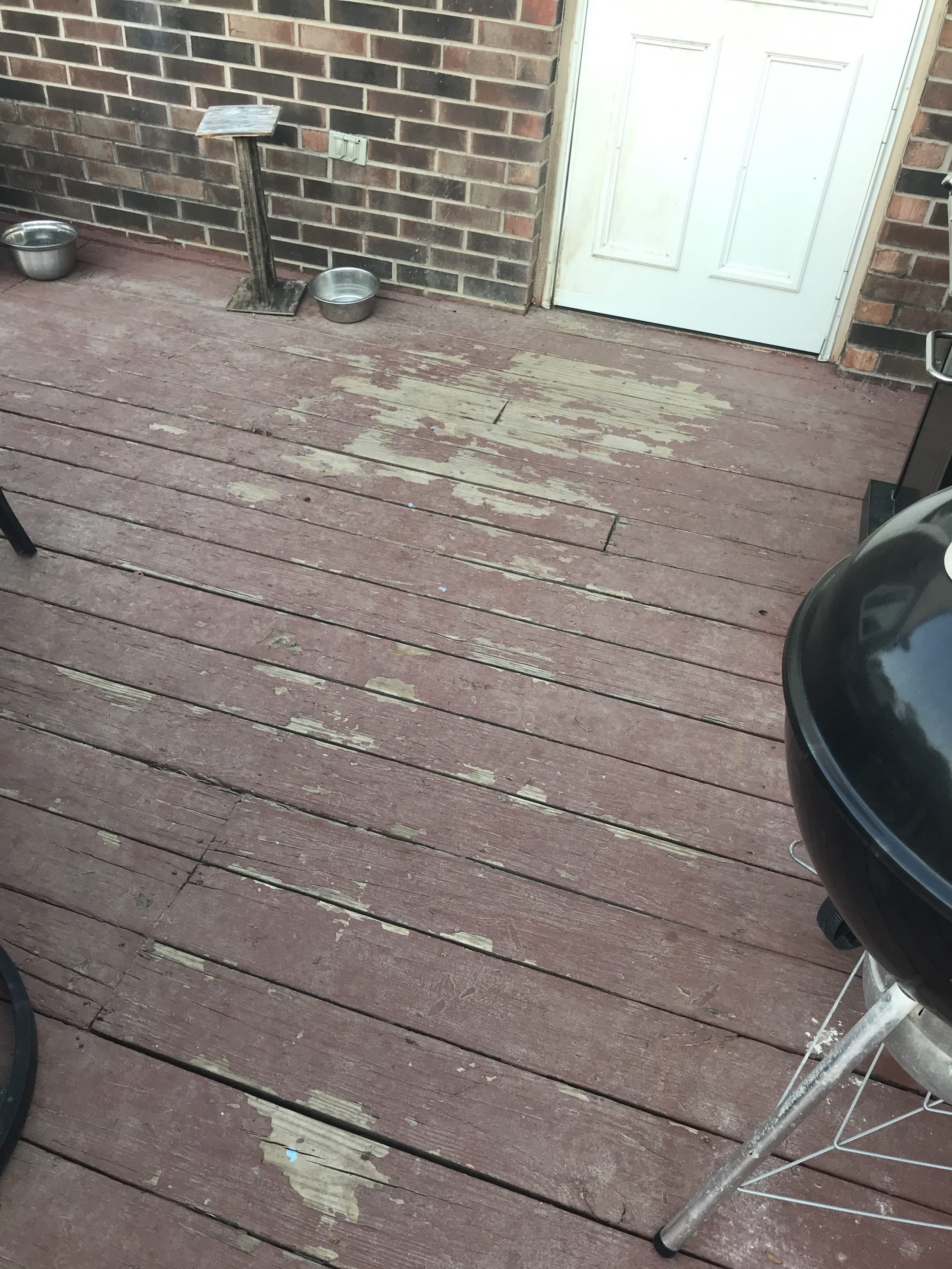 Again. This is perfect for concrete that’s been prepped properly. Truth is a spent literally 120 hours getting up carpet glue off the porch before applying the Deck Over and some remained. It’s a great product but not for wood.