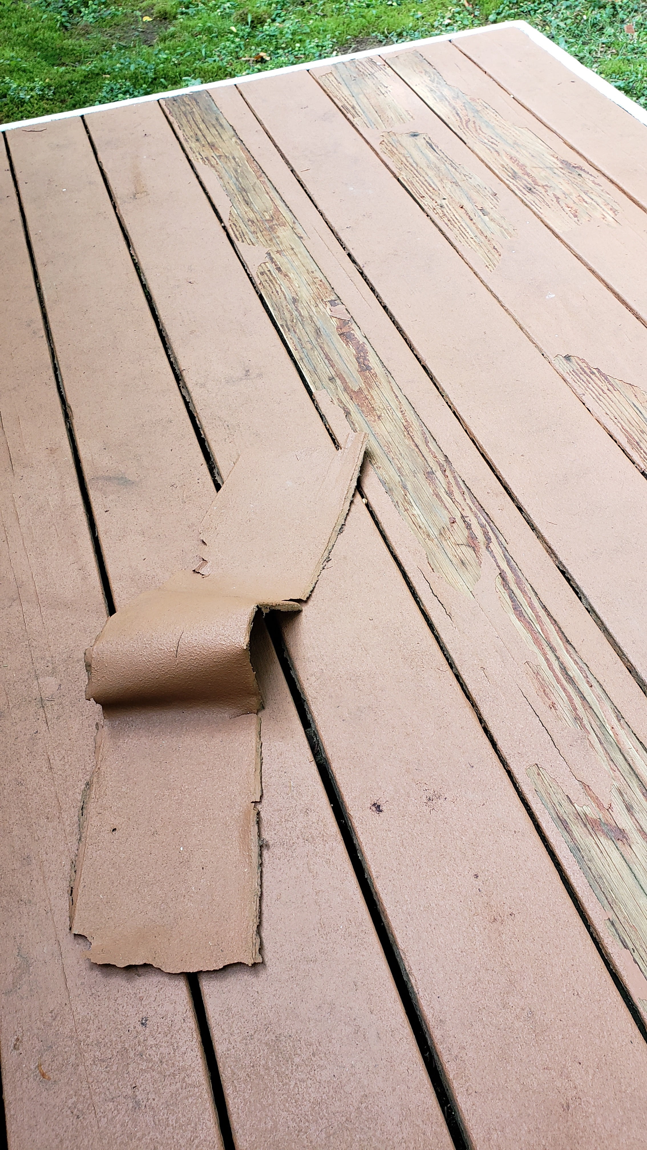We used deckover 3 yrs ago.2016. Every year it peels up all over. I repeat. Next yr same thing. I am presently attempting stripping. Not having good luck. Any suggestions? Will eventually replace deck serface.bought two types of strippers. One curled edges, other in process. Open to ideas.