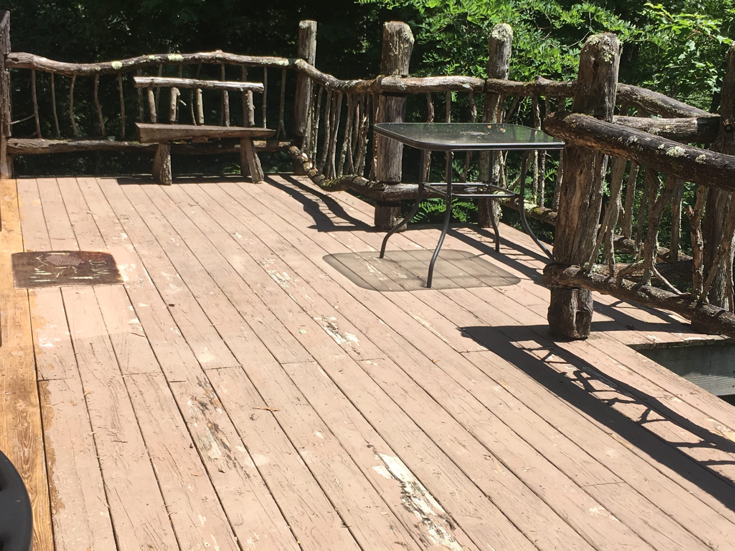 If you have a solid wood deck, clean off the gray color with a pressure washer. Let dry a few days and coat with TWP. Allow to set until the next spring and do coat again. You’ll be good to go ten years. Been there and done it.