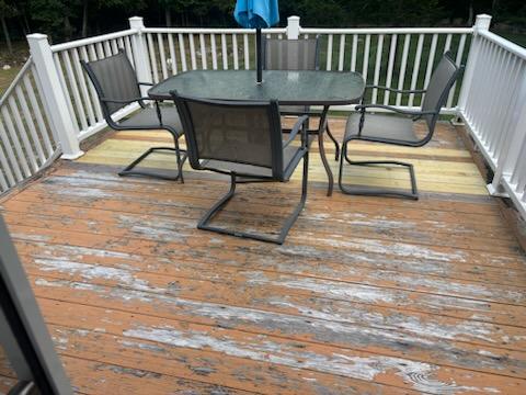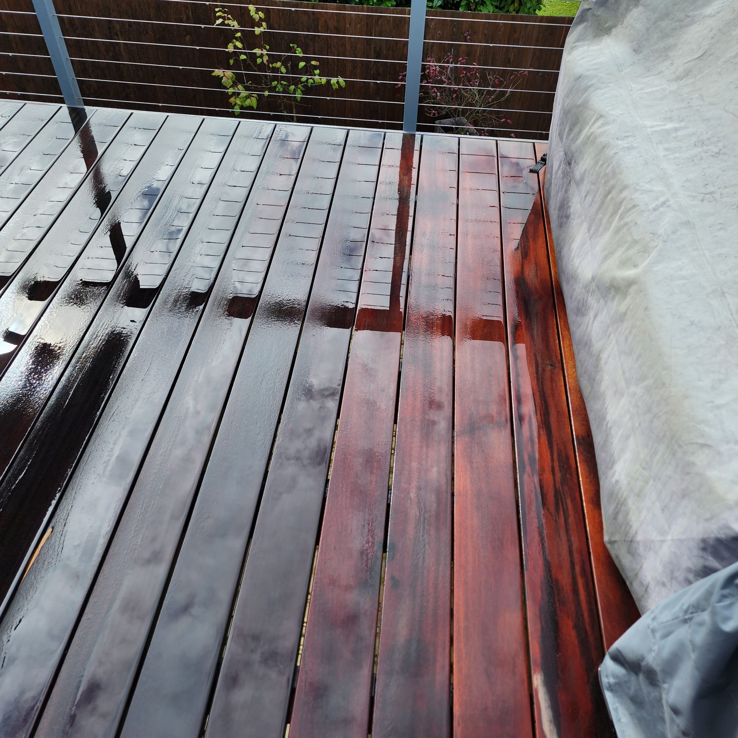 The condition of Deck: 2-year-old Behr Premium Wood Stan Semi-Transparent