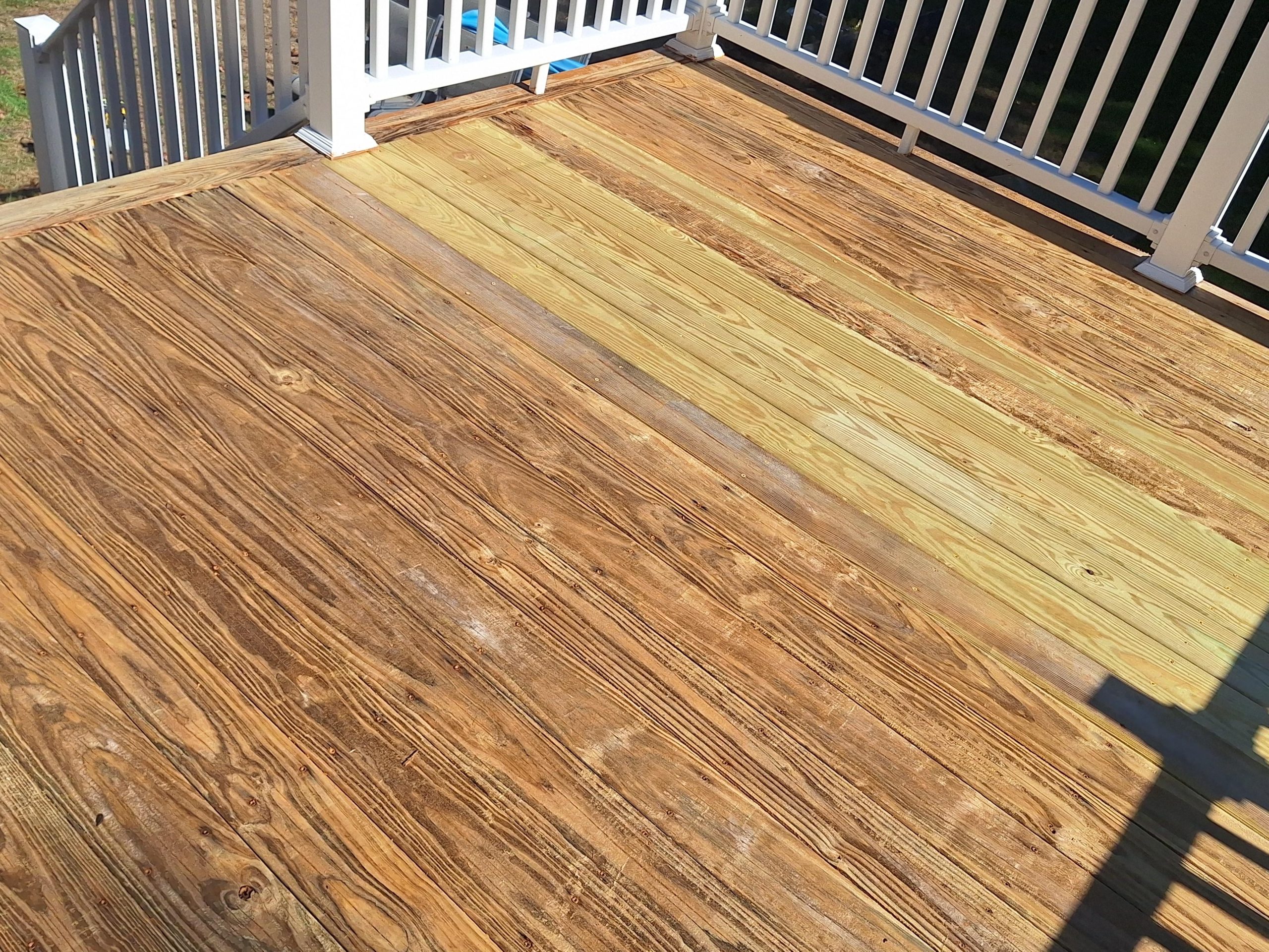Bought this product this weekend! Totally useless! It didn’t change anything and didn’t remove a part of the old painting! We should of follow of first idea to either sand or buy new deck wood! Waste of time, water and money!
