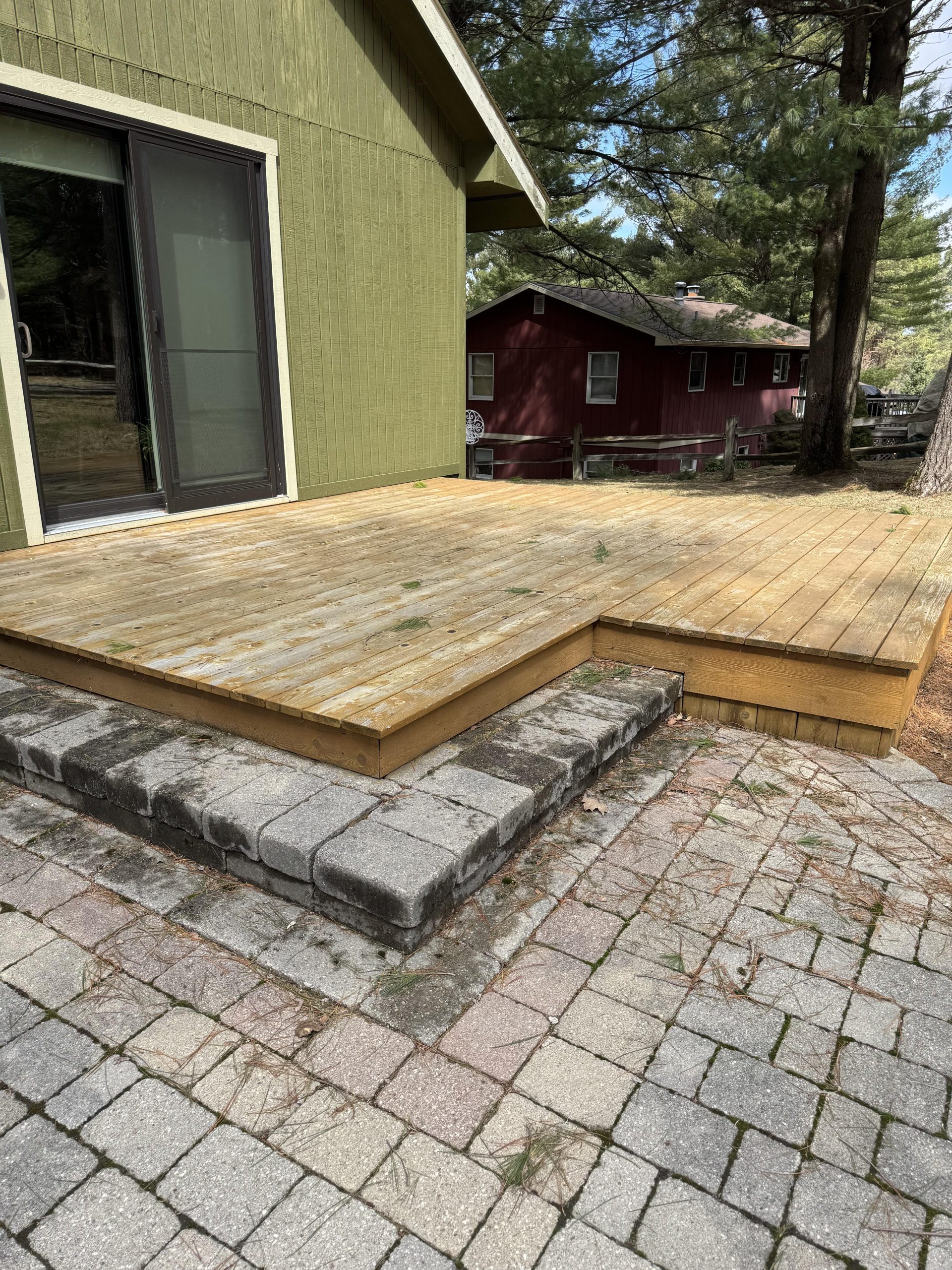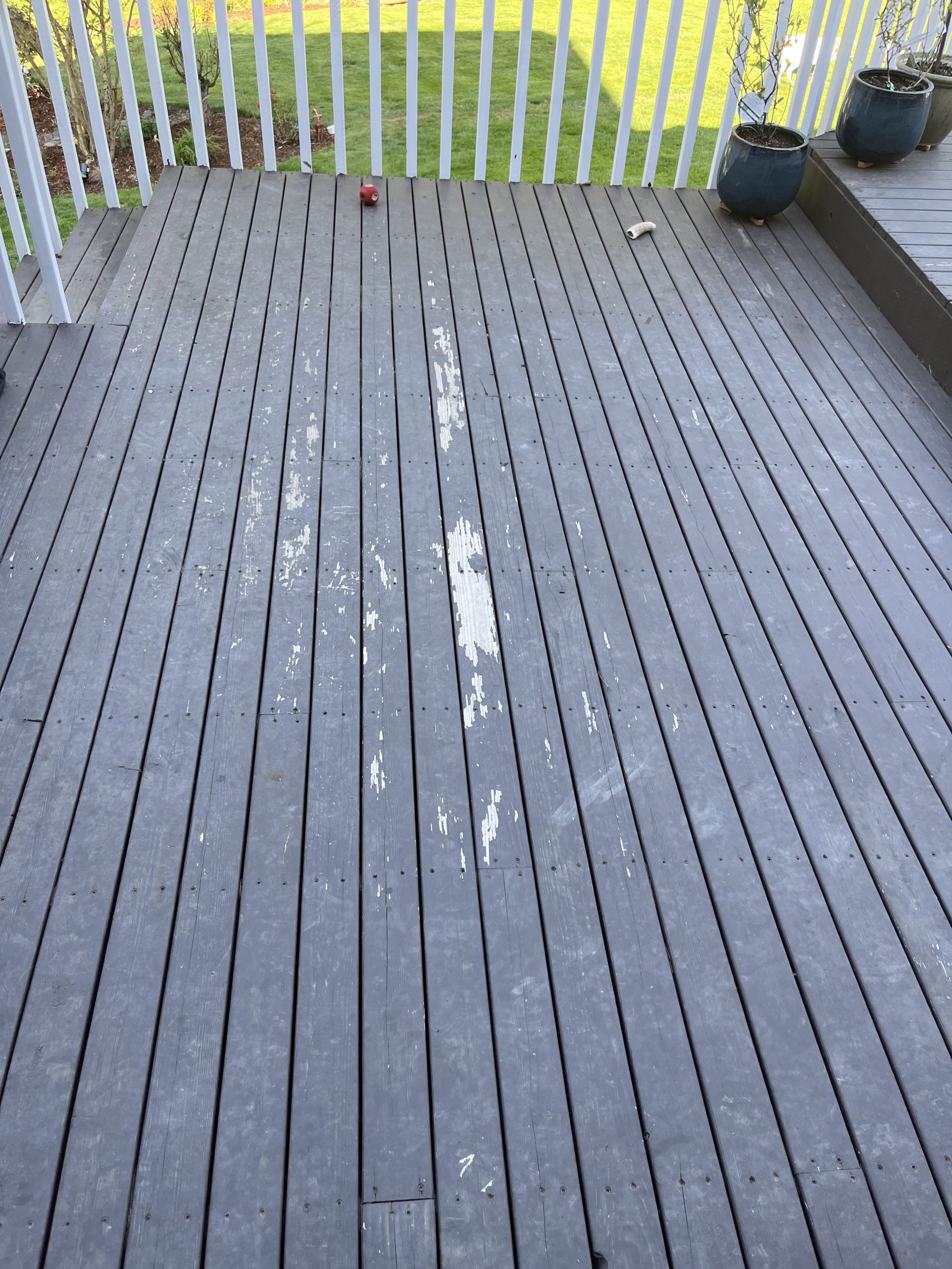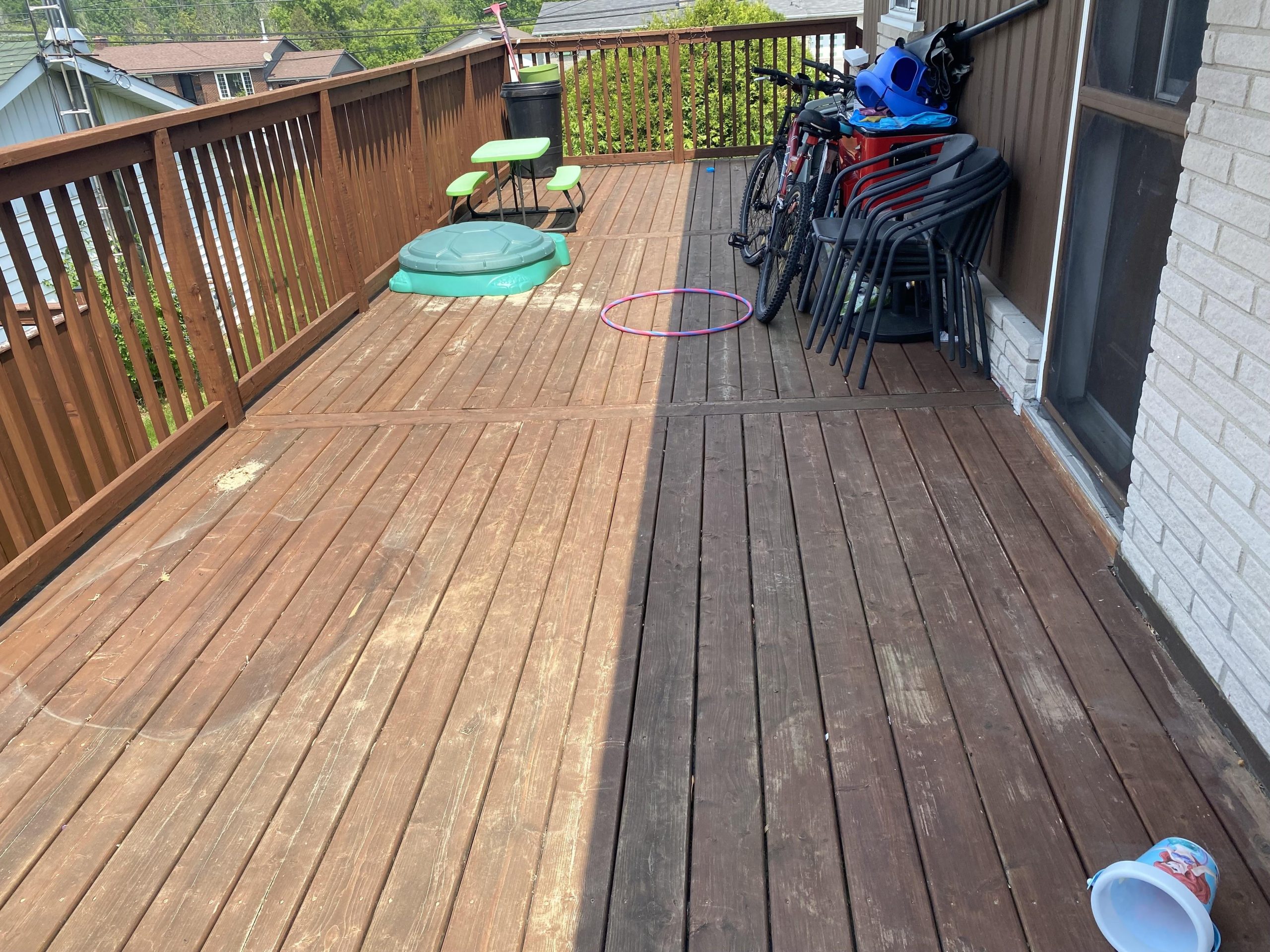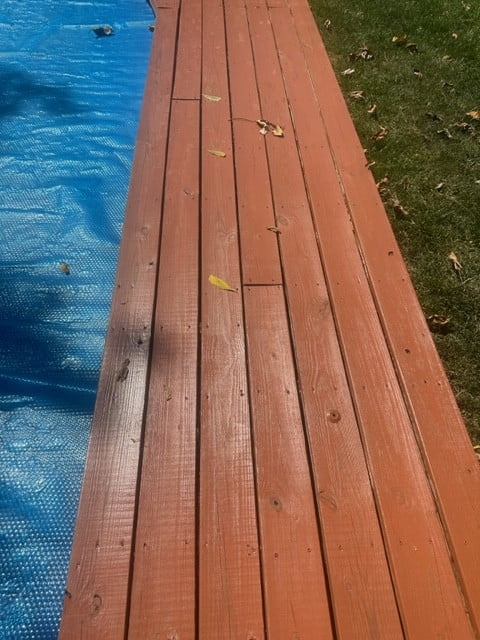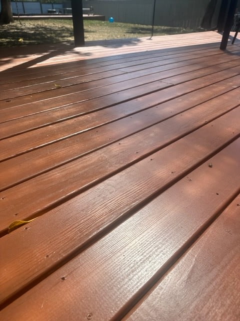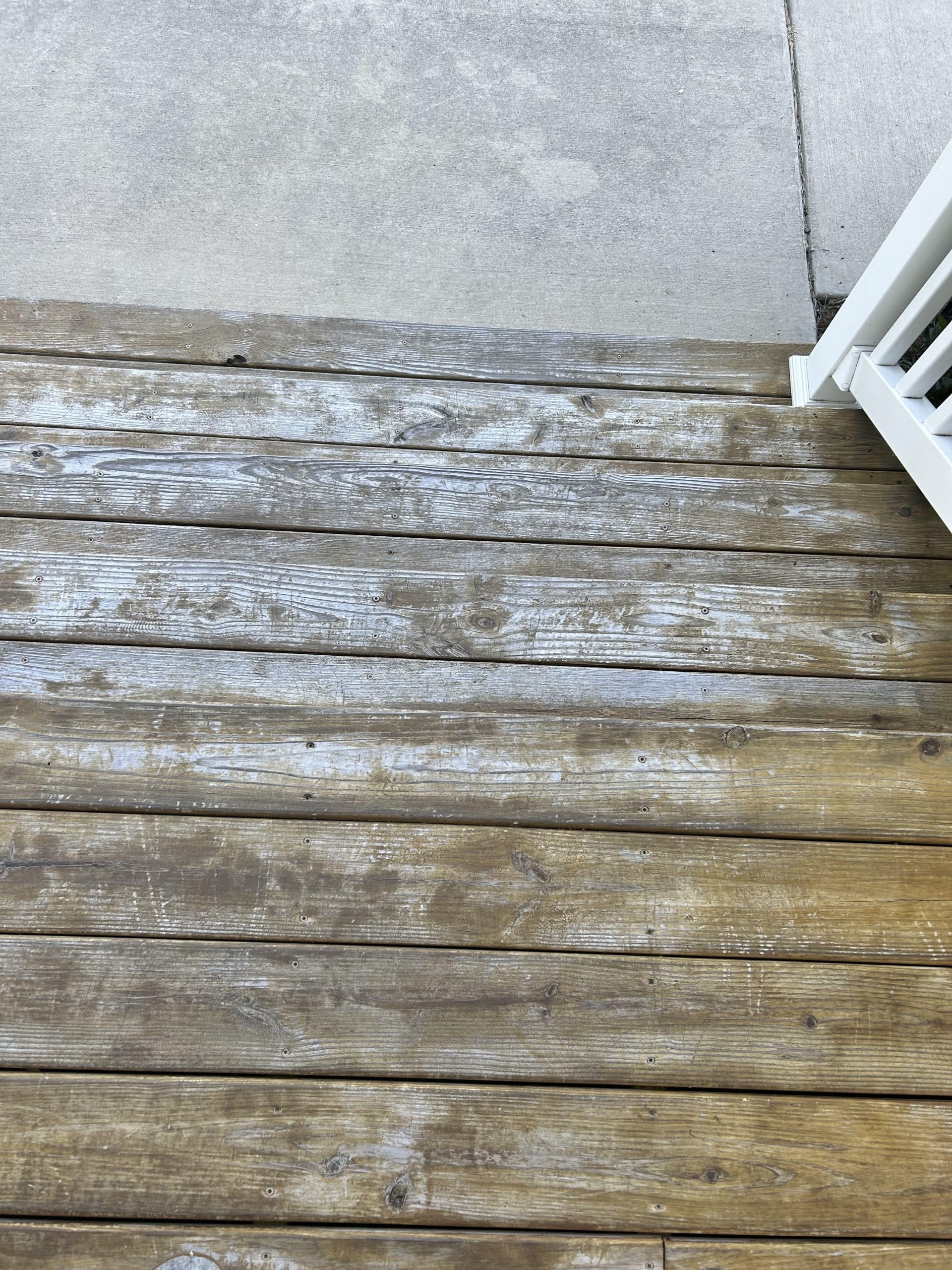 Our decks were stained with Sikkens (PPG SRD) Proluxe Matte finish after bleaching and power washing (since learned our contractor really doesn’t know decks). They subsequently came back and bleach/powerwashed to what we have now. (At this point I moved on from them)