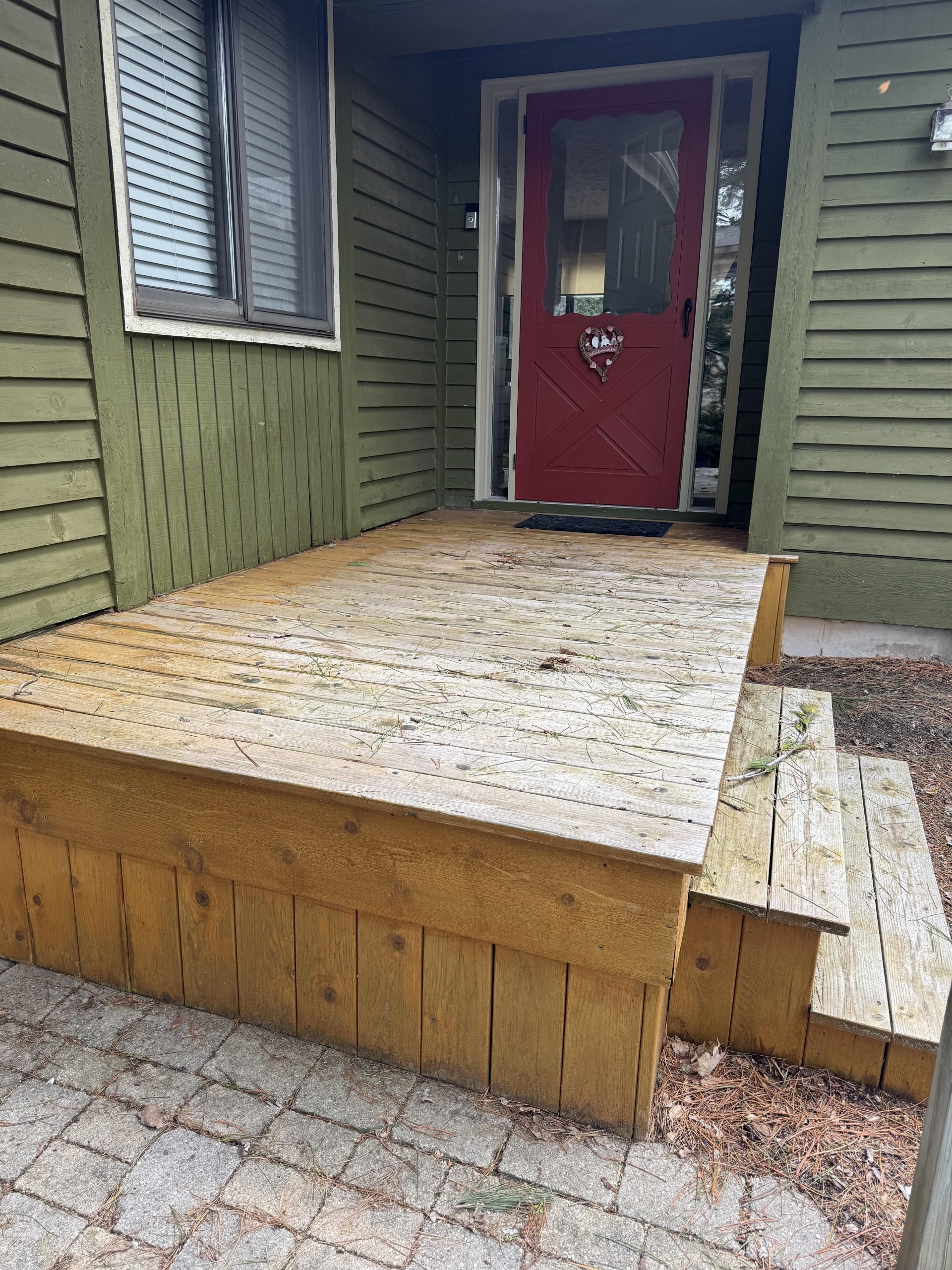 I have a 24 sq. ft. “Stoop” + one step, that needs attention. I bought the condo 7 years ago and have no idea what the previous owner put down. I’m hoping you can tell from the photo. I really don’t want to rent a power washer for such a small area. What would you recommend? Thank you!