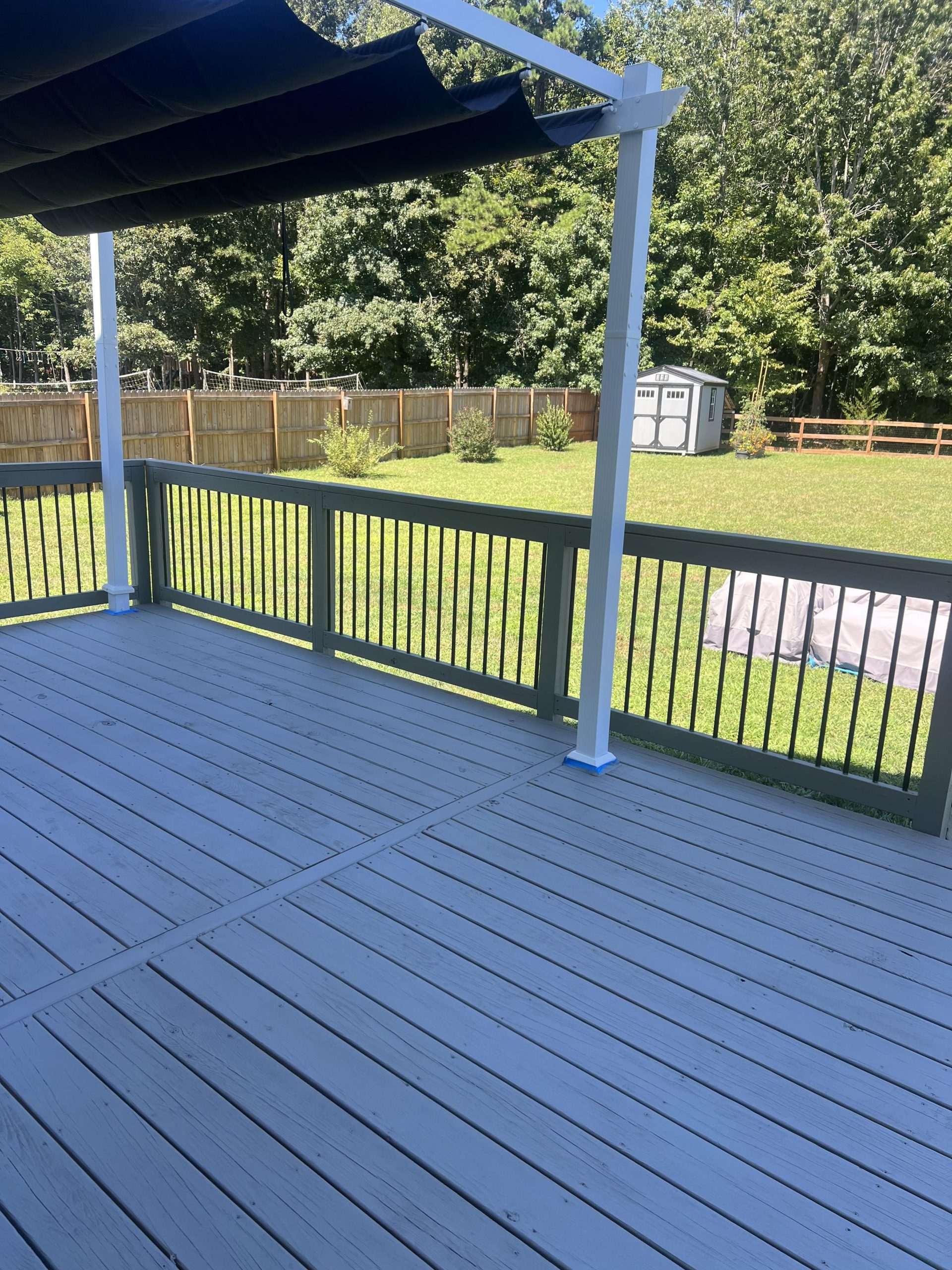 Stripped the old deck and brightened and then brushed the solid stain (Coastal Gray)