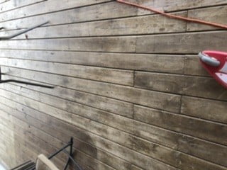 Solid stains tend to peel in horizontal areas. The RAD Wood Stain can be cleaned and recoated as needed.