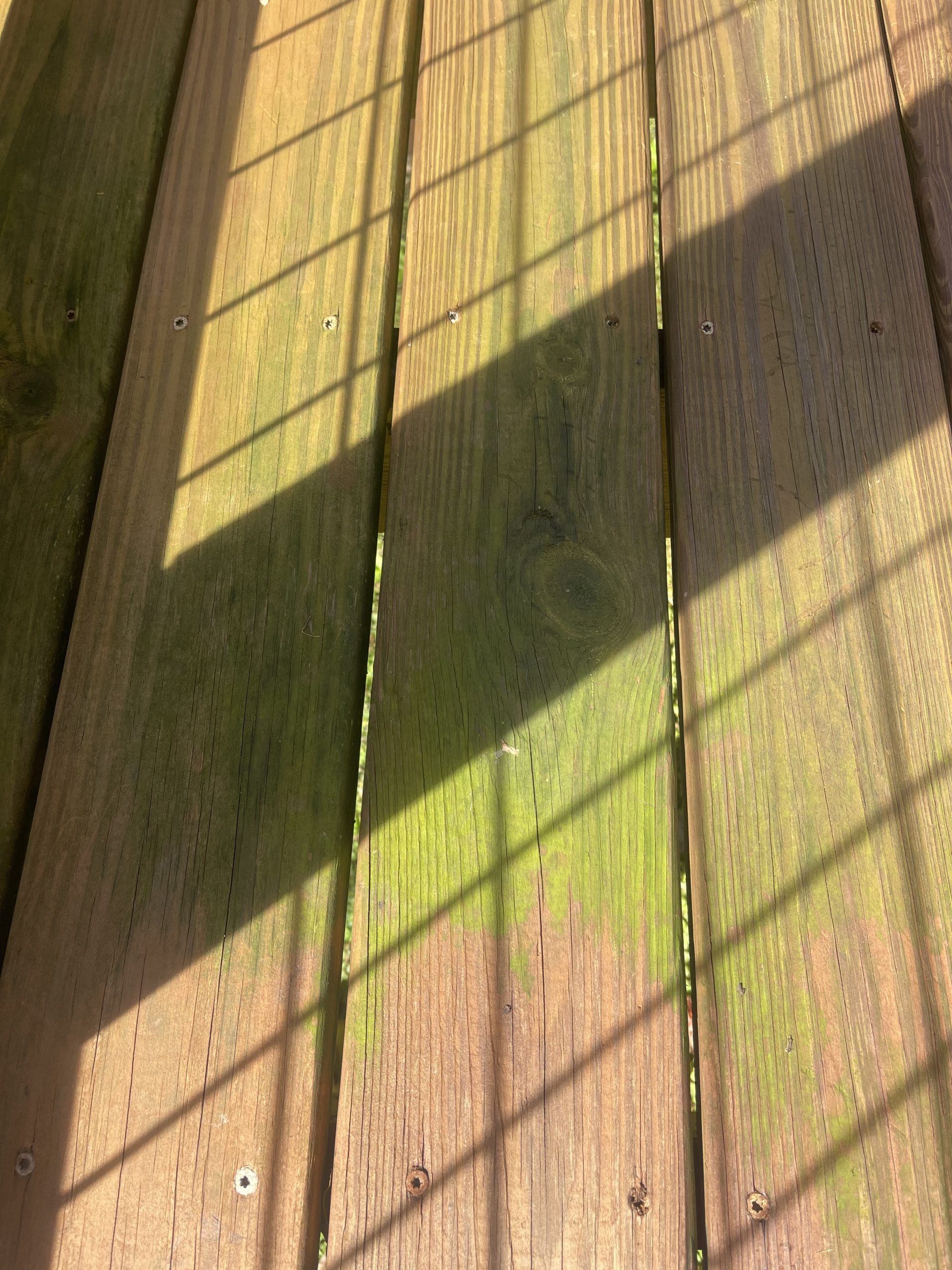 Sorry. Too late. Deck has already been cleaned and brightened with RAD and pressure washer. I’ll put a tickler in my calendar to take pictures next spring. Thanks. (Cross-post with RAD)