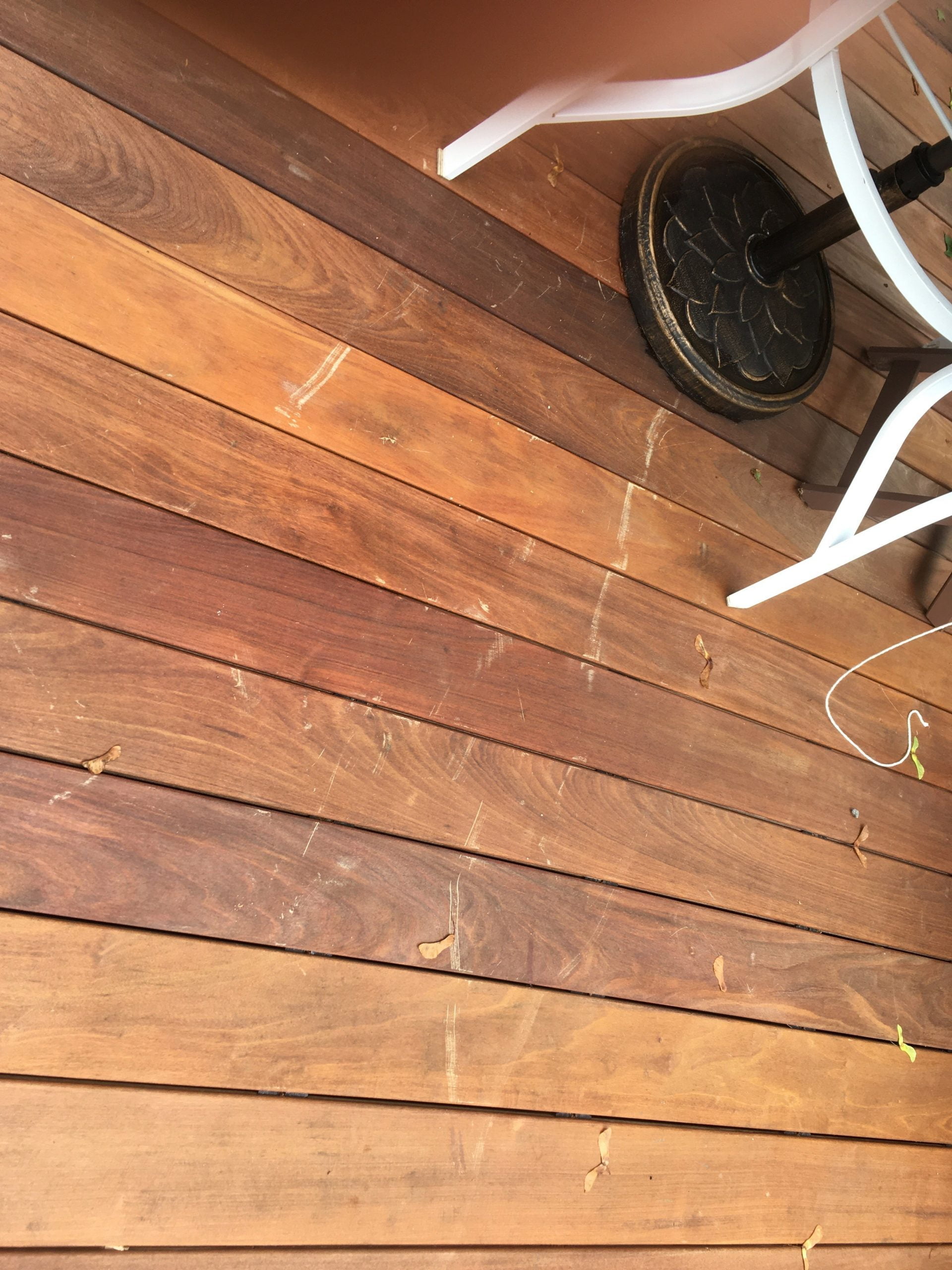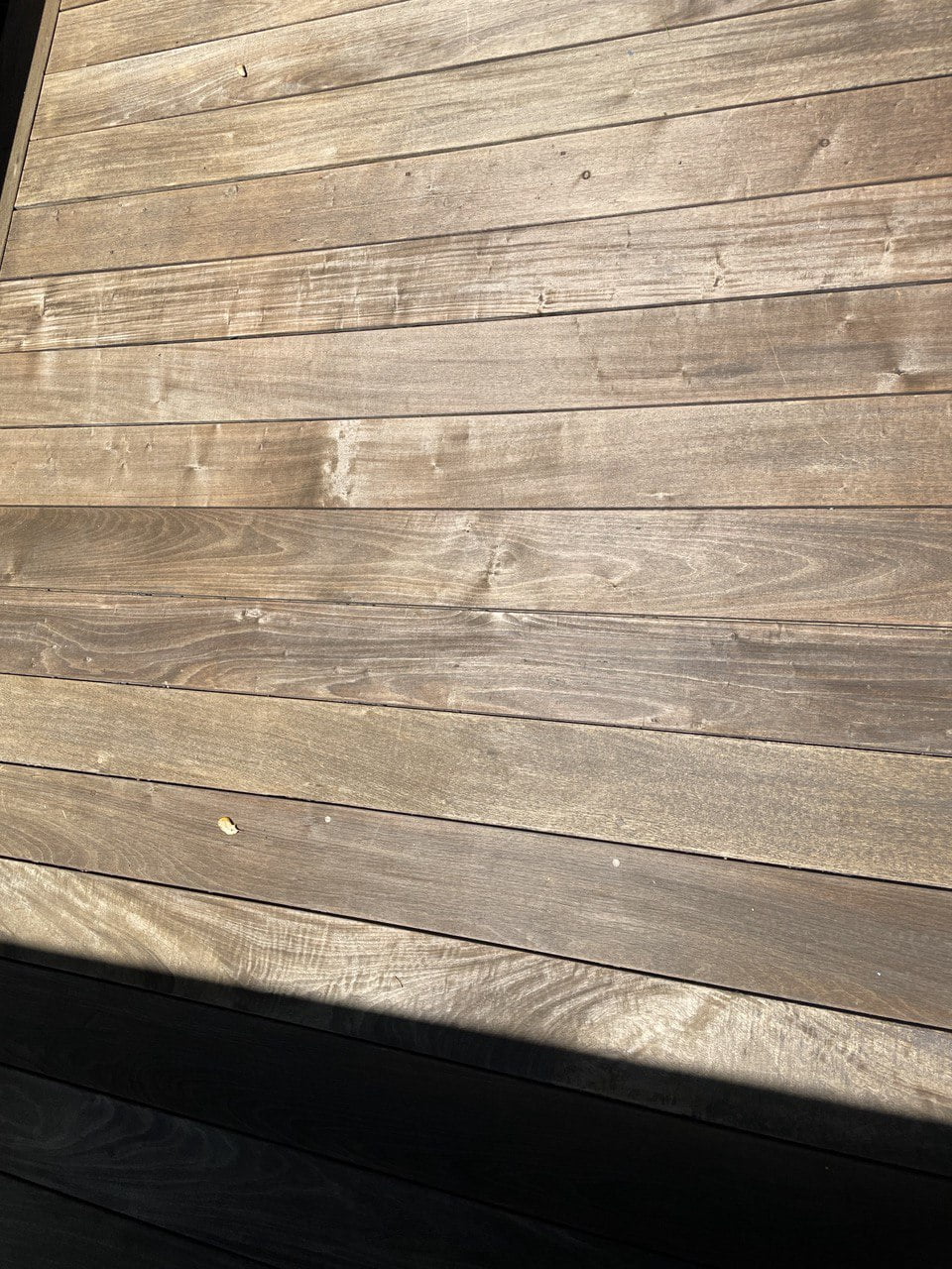 We have an older IPE deck that we have had various finishes on. I haven’t really liked any of them. I decided to strip the deck down. I used Benjamin Moore Remove. Due to the weather I have not yet applied the Brighten. According to the pictures, what should be done to get it back to the IPE’s original color