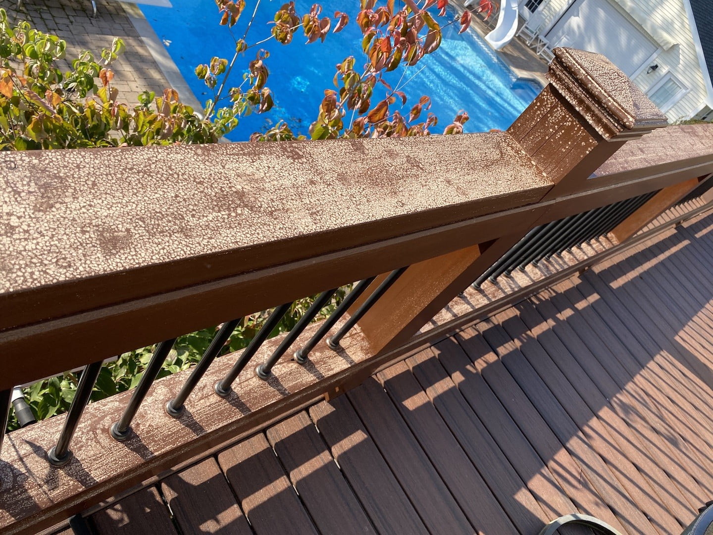 Thank goodness it’s on the railings. I will do that (pressure wash then recoat). Thanks for your quick reply. Truly appreciated 😊