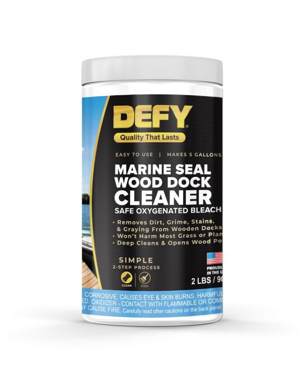 DEFY Marine Seal Wood Dock Cleaner is an environmentally friendly, biodegradable wood cleaner designed specifically for boat docks, piers, marinas, and other exterior wood surfaces near water. This high-performance powdered concentrate safely cleans, brightens, and restores the natural beauty of wood without harming wood fibers, grass, plants, or marine life.