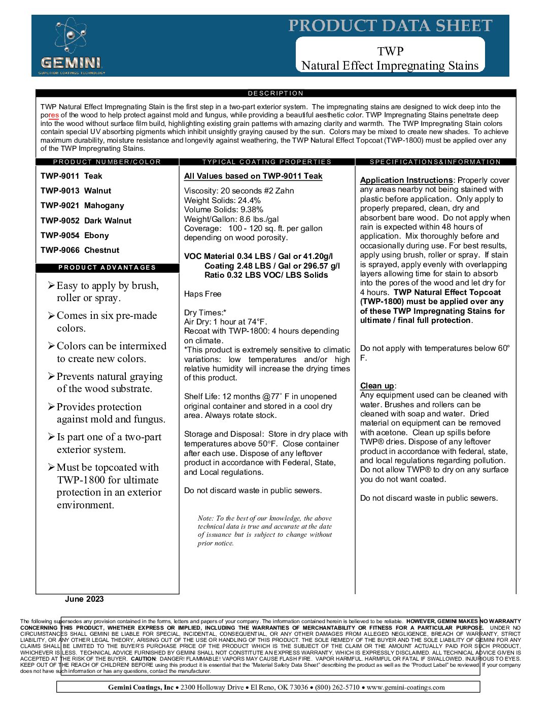 ✔ TWP Natural Effect is Step 1 – Must be used with TWP Natural Effect Top Coat (Step 2) for complete protection.