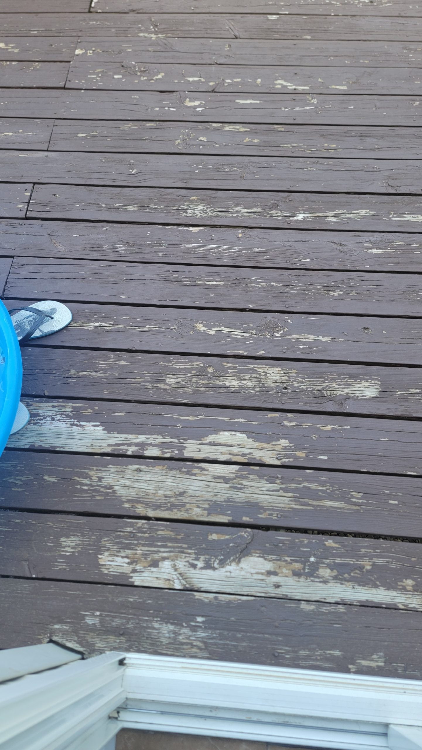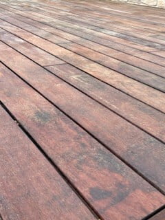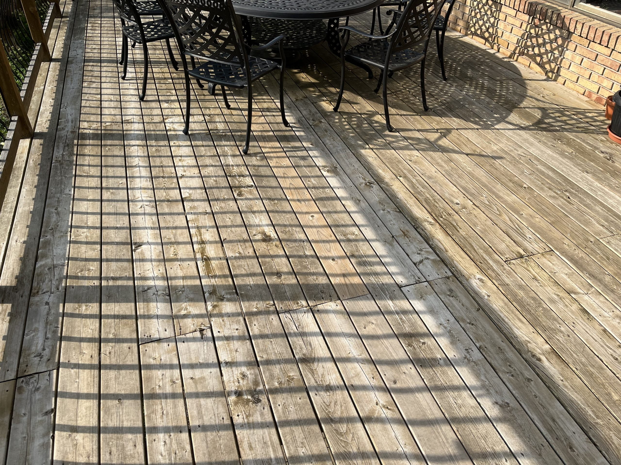 The deck is 4 years old. The deck receives shade in the am and very strong afternoon sun.