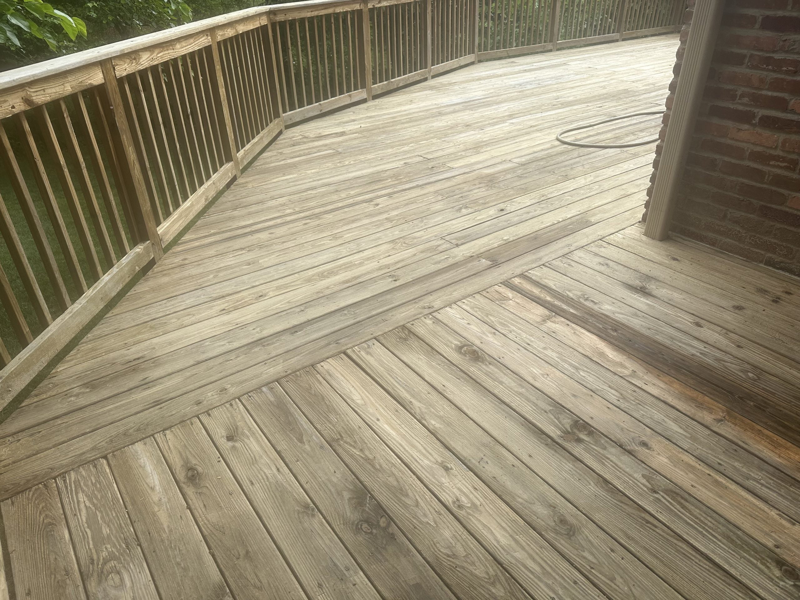 ** We cleaned year-old untreated cedar with percarbonate mix, brightened with DEFY, and stained with Armstrong Clark