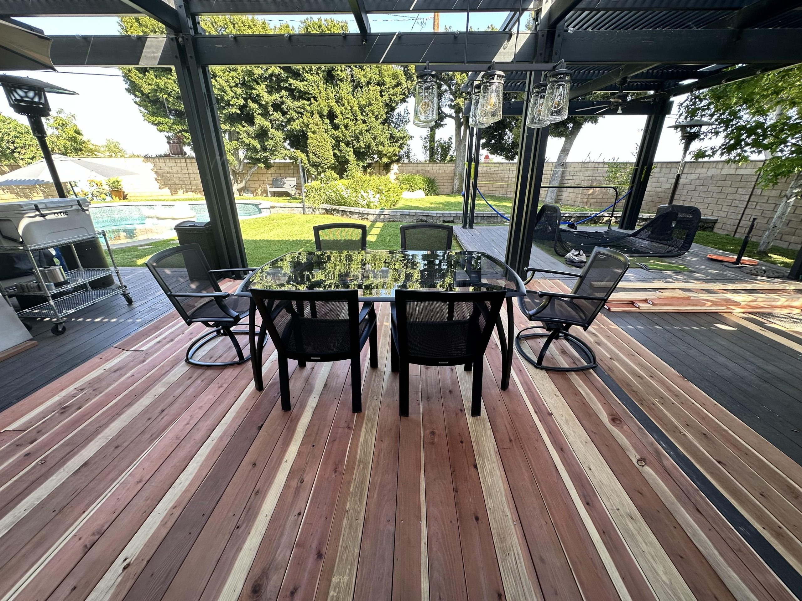 Half covered, half not full shade treated lumber