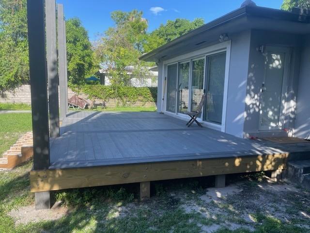 The Deck gets Full afternoon sun and is pressure treated pine