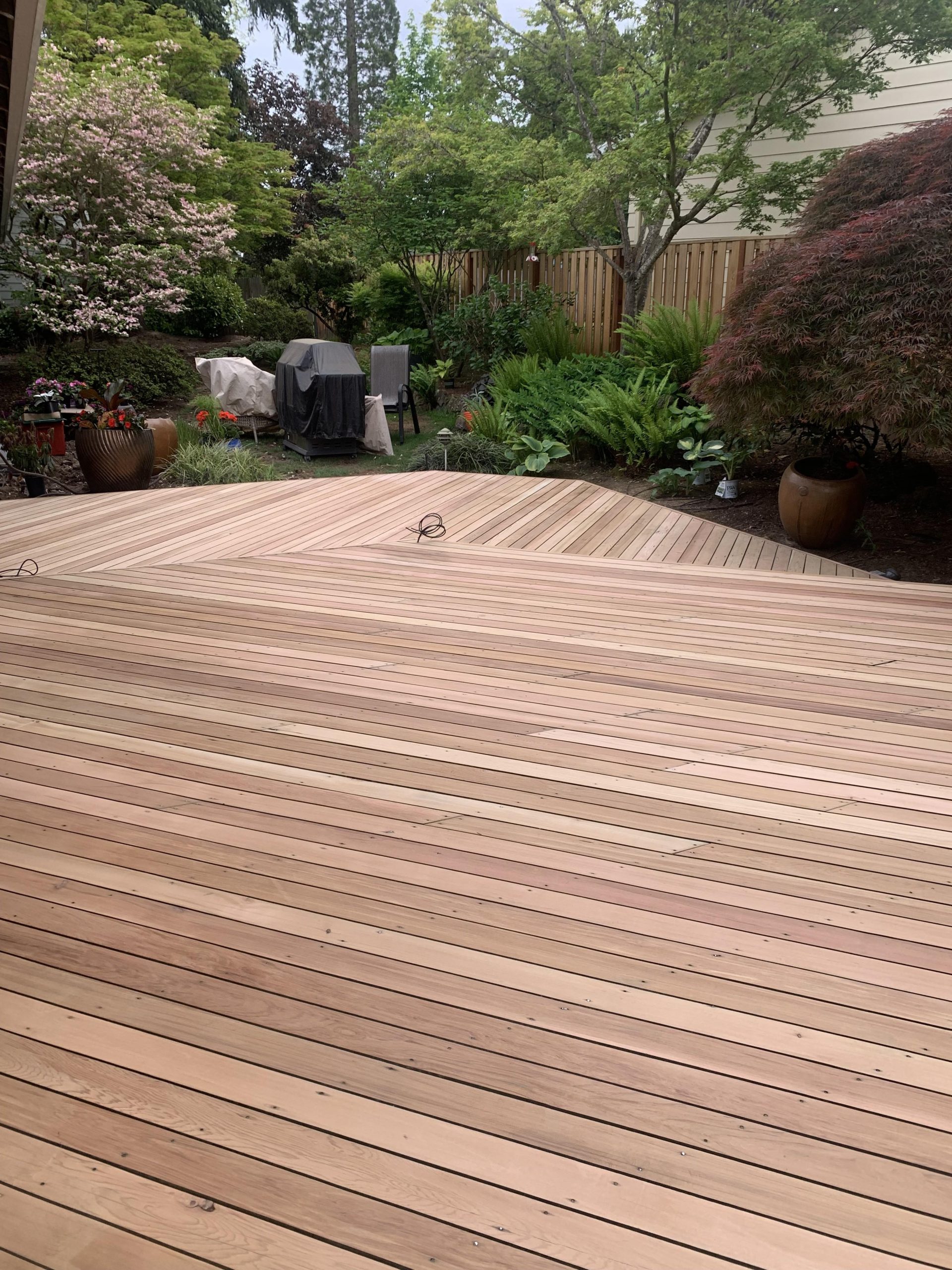 I have a brand new deck made up of beautiful grain 2X8X8’s planks of Douglas Fir lumber, so having the grain show is a preference…