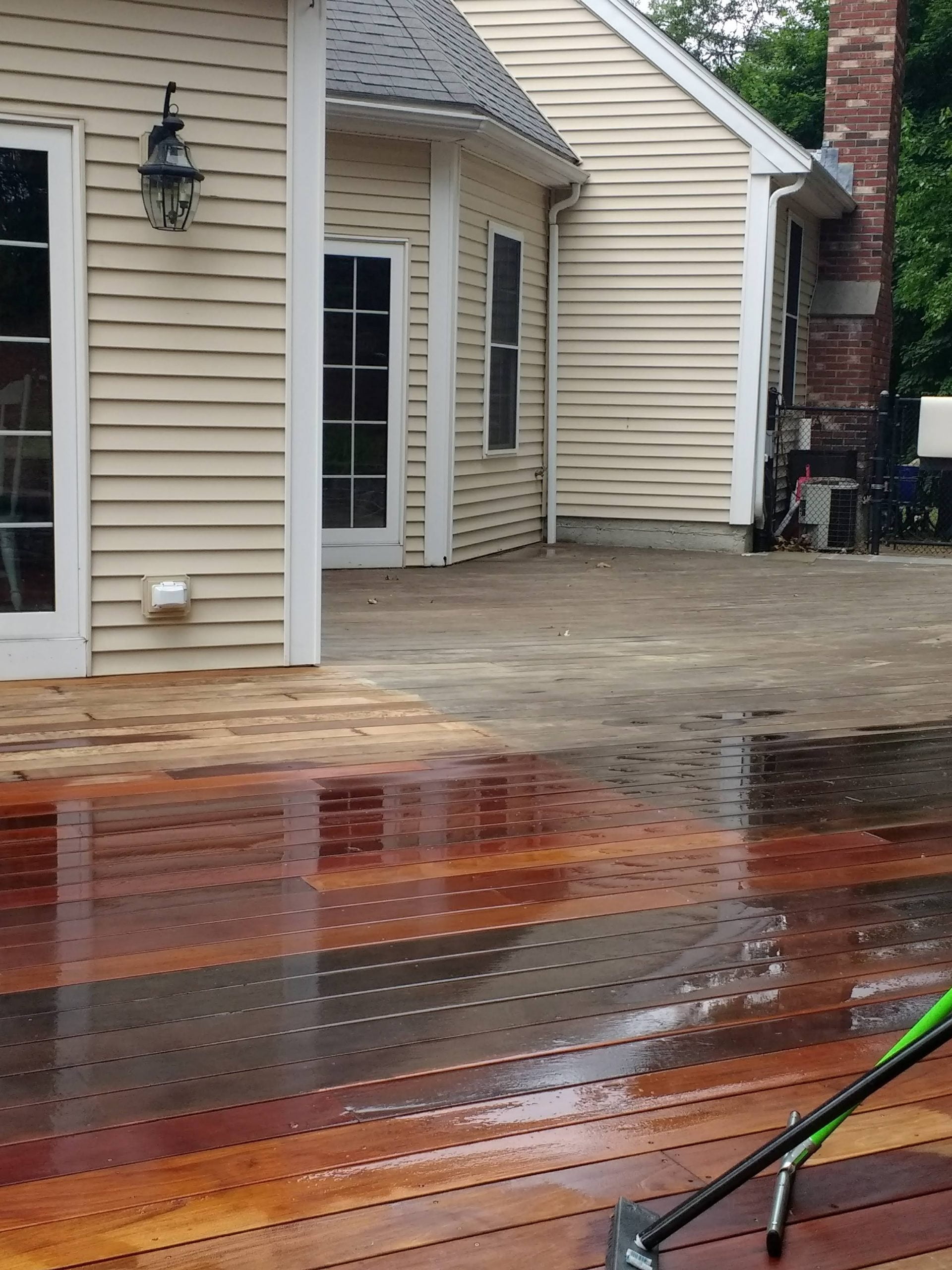 I prepped the deck with the Gemini Restore Kit and applied the TWP 120 Pecan color after a few days of drying. This deck was originally done with the TWP 101 Cedartone. The customer wanted to use the Pecan this time as it has a slight “brown” tone. The overall appearance was excellent.