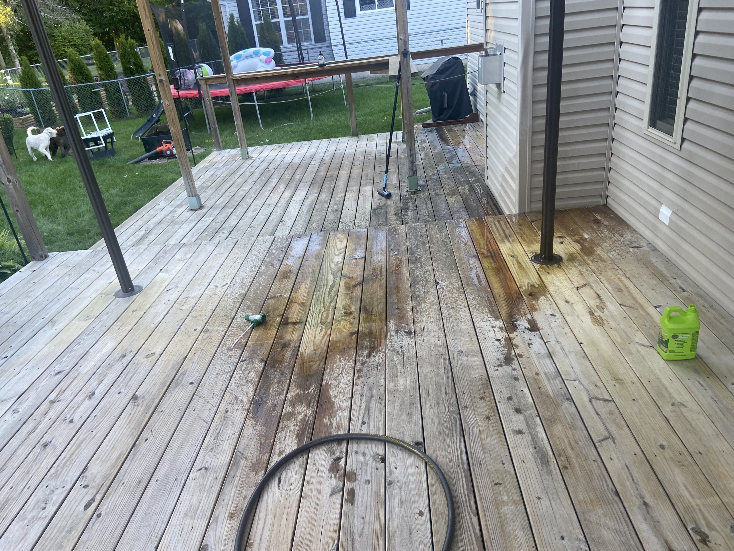 There are much better wood deck cleaning alternatives out there other than bleach or bleach-based cleaners. Bleach is not a great wood cleaner, it can damage the wood fibers, and can be unsafe to handle. Stick with cleaners that are designed for wood cleaning and prepping wood decks for stain.