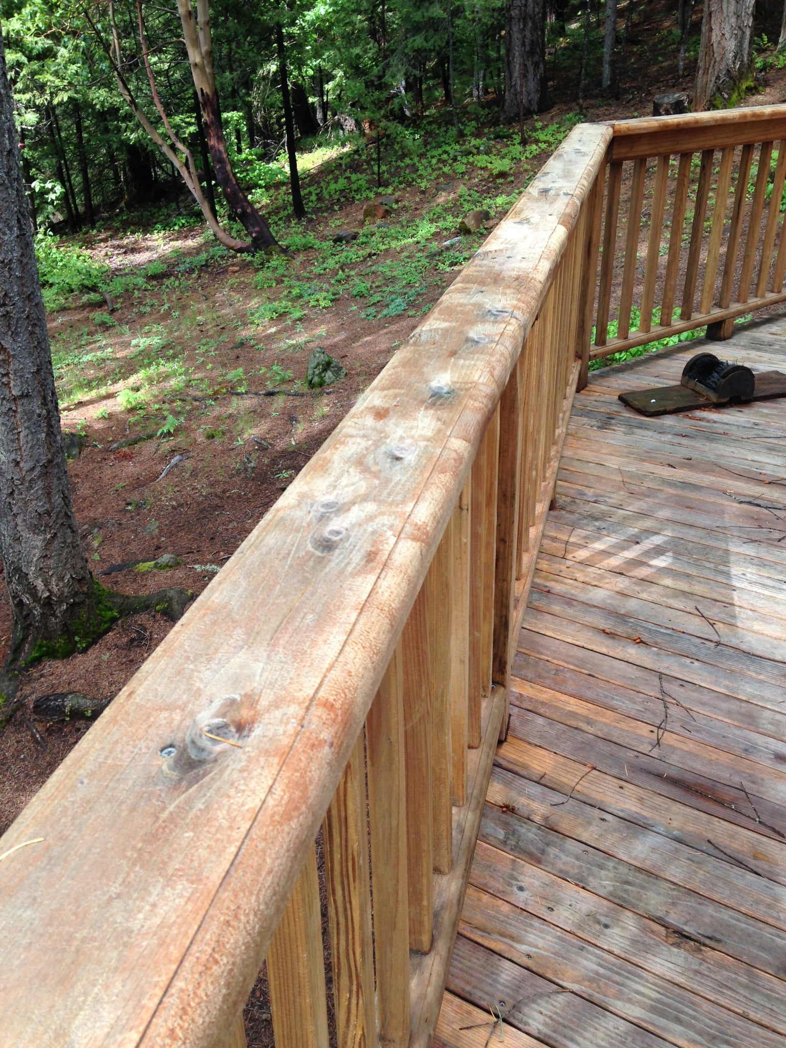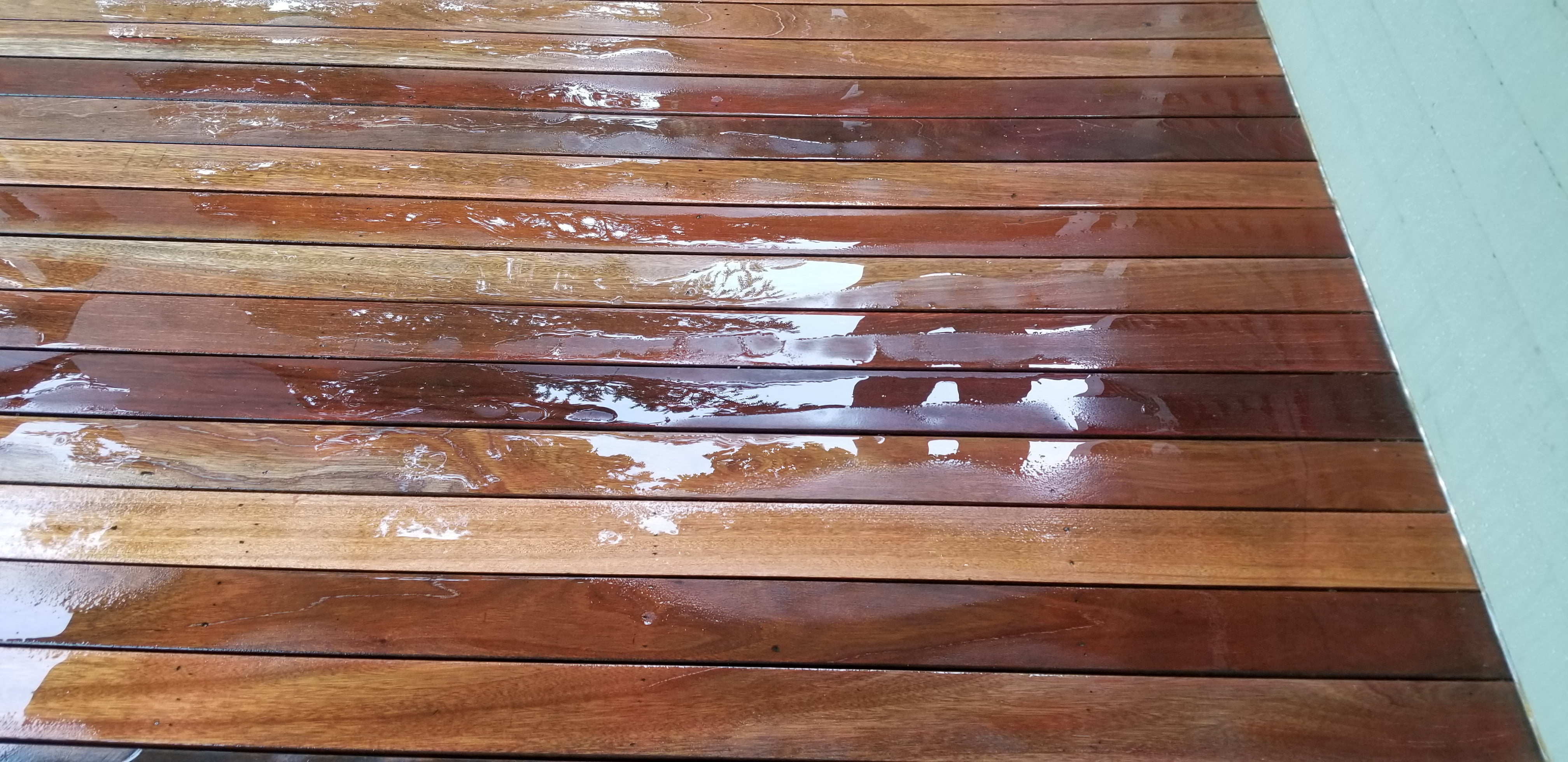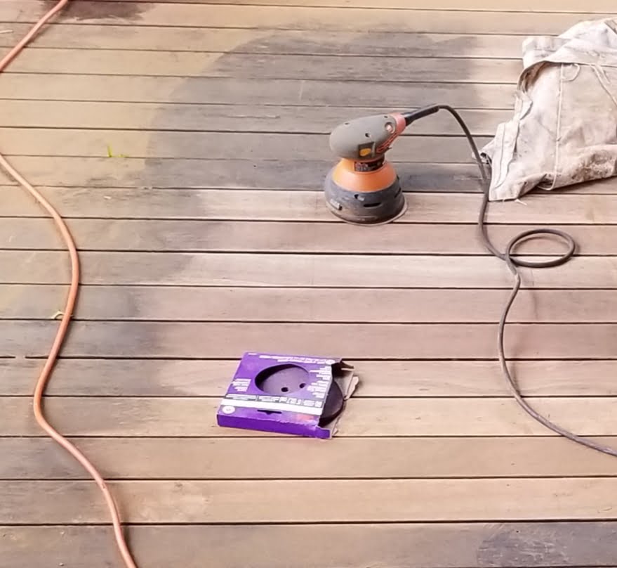After hours of sanding I rinsed off the deck to remove the dust and look for water beading on the wood, which I saw.