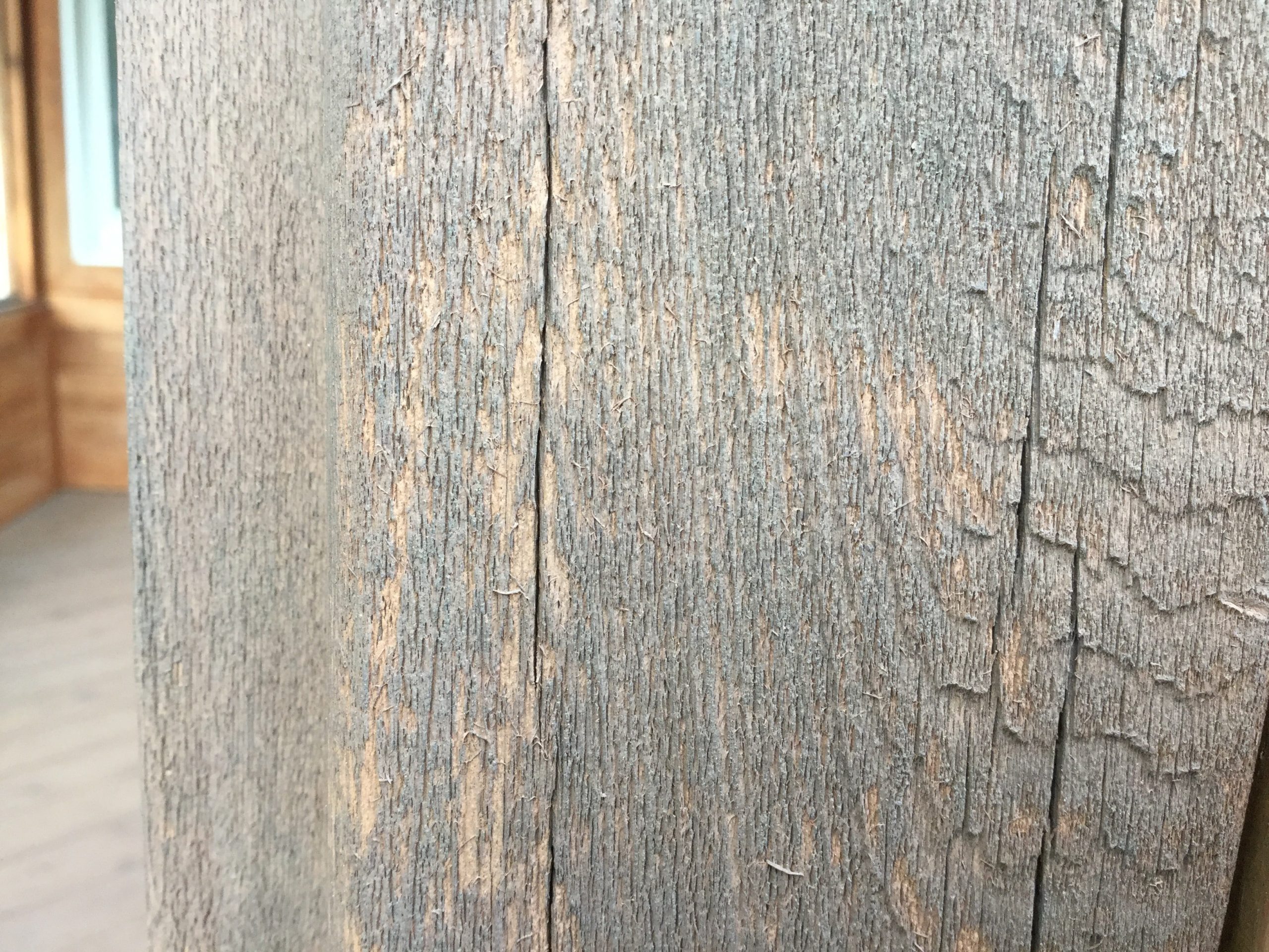We have a log home we purchased 5 years ago near the twin cities in Minnesota. The logs are northern pine with pine plywood and rough cedar battens. We also have green treated decking around a large part of the perimeter that has been all stained the same. We found a empty 5 gallon bucket of Defy which I am assuming is what they used. The condition of the logs are varied with some sun beaten and very little stain and other areas under the overhangs looking very good. I have several questions: