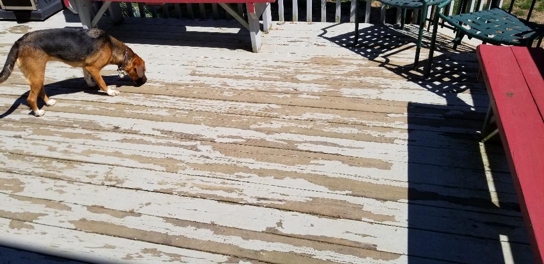 Here is a picture of the deck I was asking about it peels on floor boards and the hand rails any help would be great