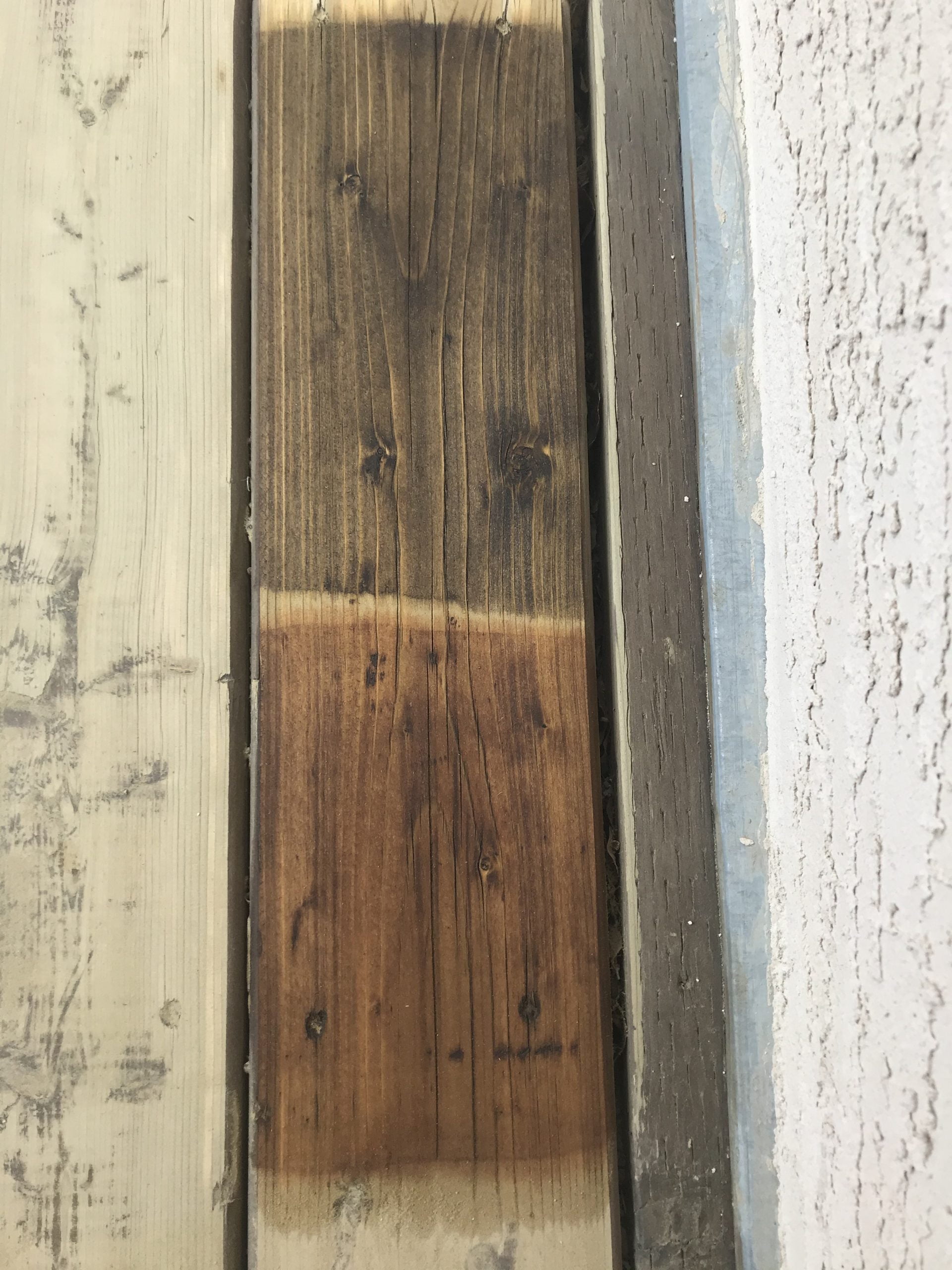 To reverse this after using a deck cleaner, apply a wood brightener. A wood brightener contains a mild acid formula that neutralizes the higher pH balance caused by caustic soaps. The effect is that the wood’s pH balance is restored, and the wood is brightened back to its natural color. This will ensure that your wood looks natural and shines through as it should after applying the stain.