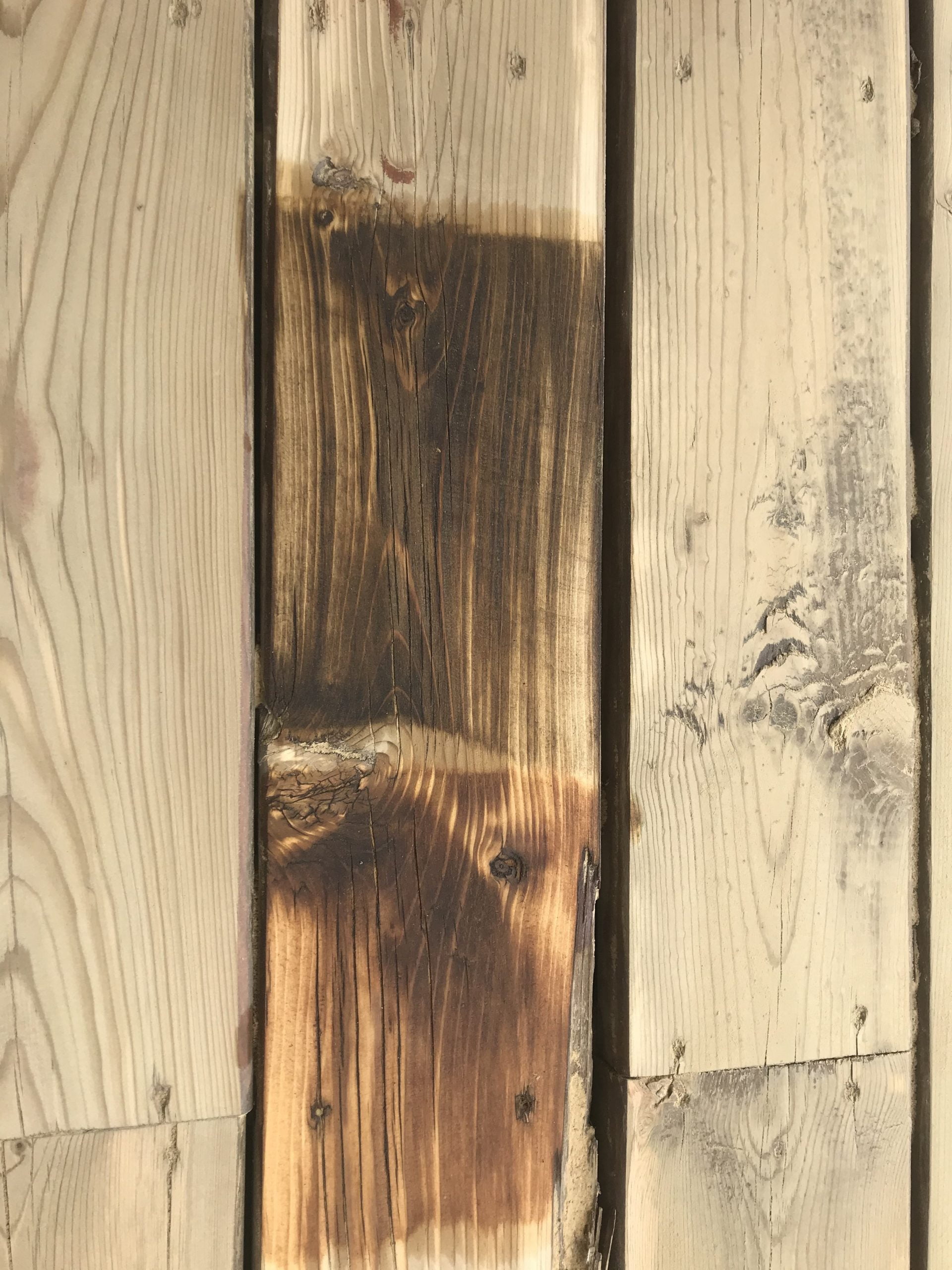 Let the wood sit for 1-2 months bare and then clean and brighten for prep. This is the only way to even out the porosity.