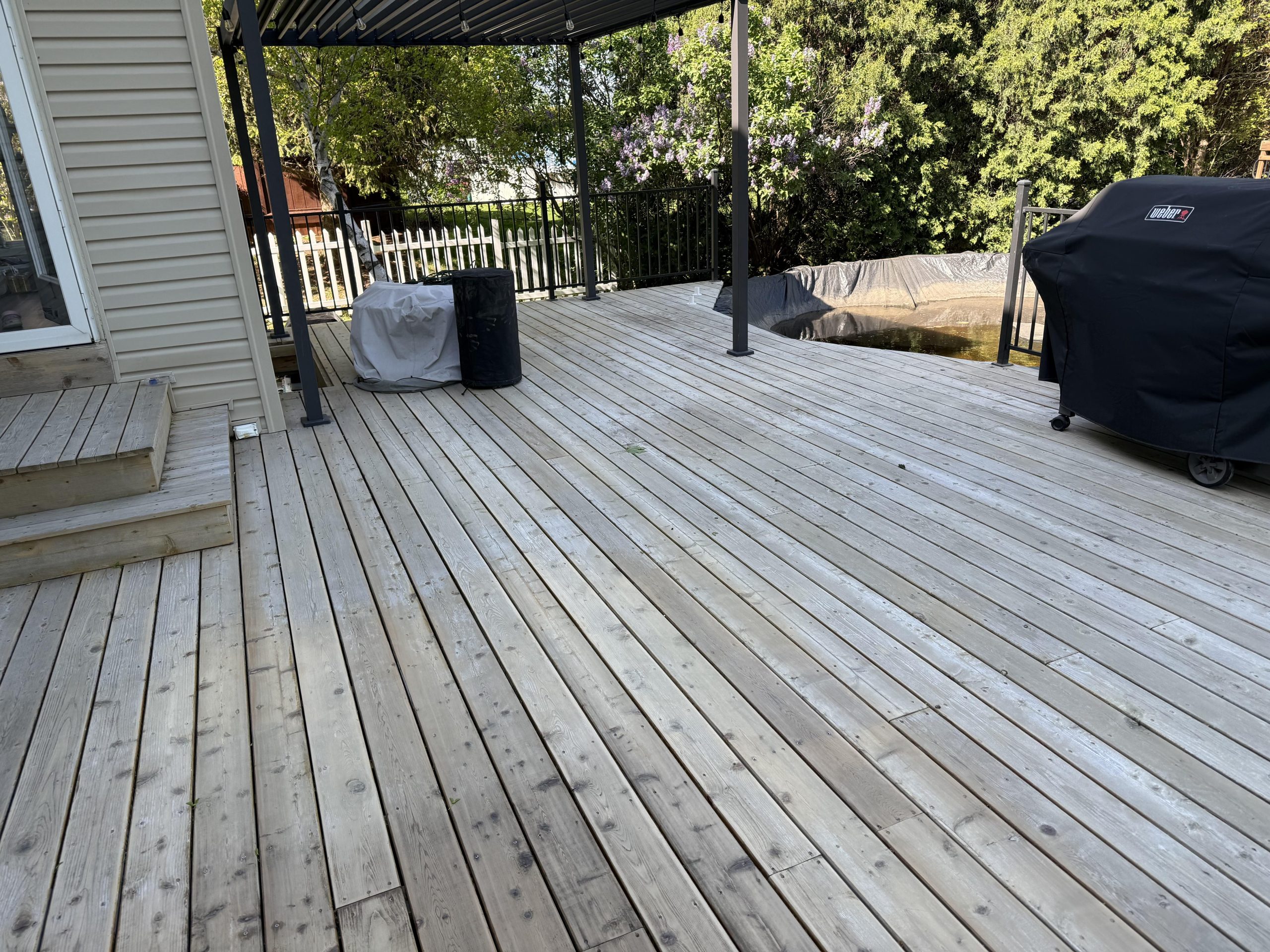 - Once the deck is dry, gently sand or buff the wood to remove the fuzzy texture.