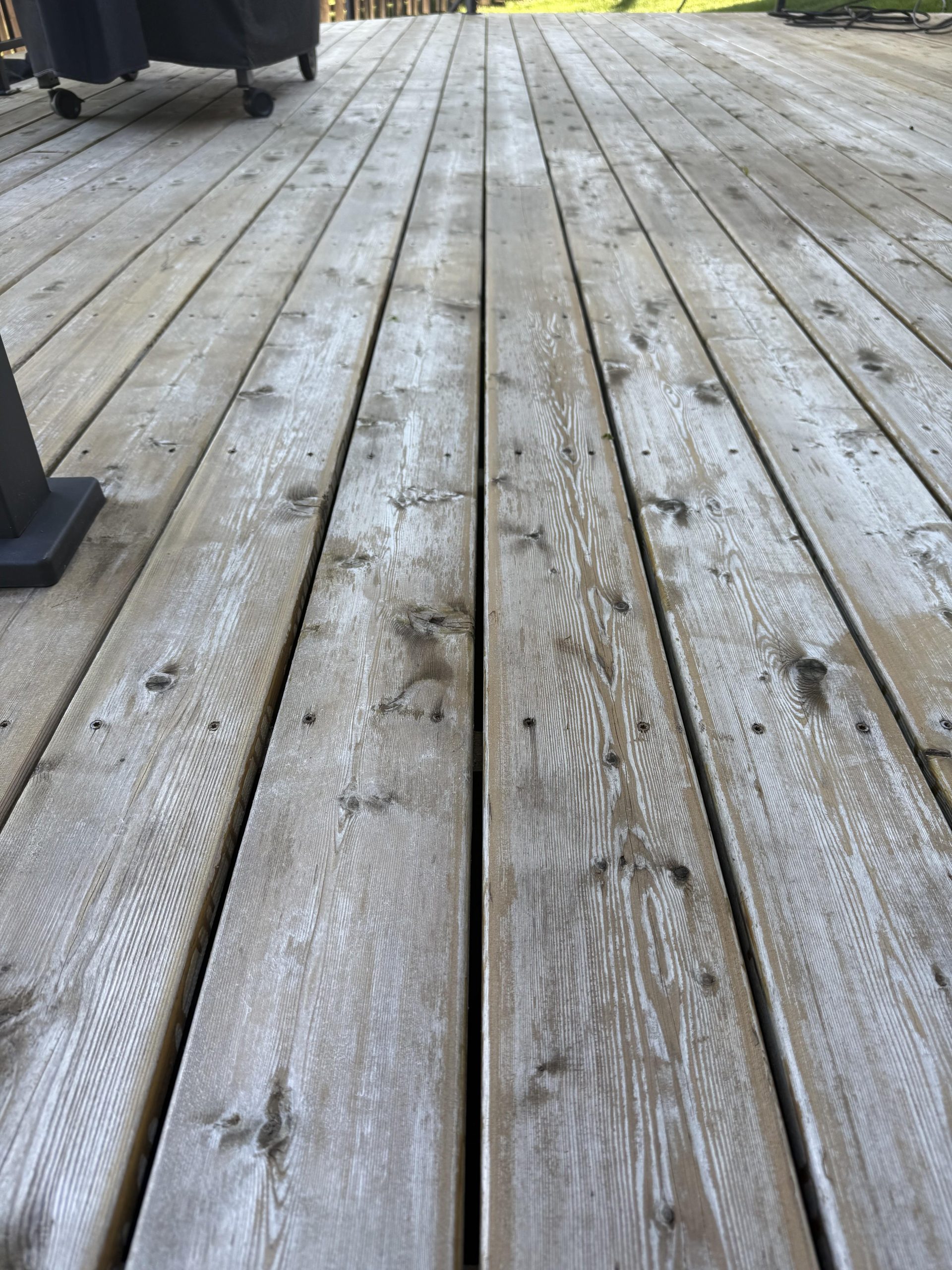 Hi I have a treated 5 year old deck. I cleaned it and it was really gray Menards said to use a stripper even though it didn’t have anything on it. Now it’s a disaster.i used the hose because i was afraid to power wash it but i don’t think it was powerful enough to get all the product off now it’s gray, clean and fuzzies everywhere. I probably should have power washed it but now what?